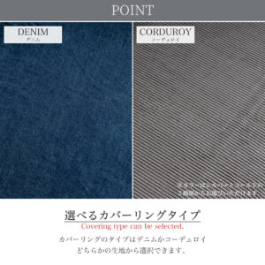 カバーリングのタイプはデニム地とコーデュロイの2種類から選べるので、お部屋のコーディネートの幅が広がります!