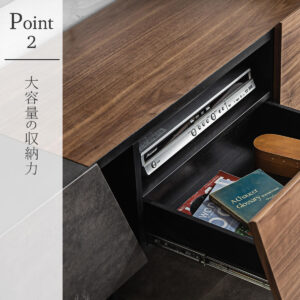 マットなブラックカラーがテレビボードのテイストとマッチします。