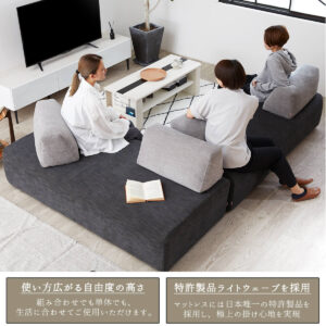 背クッションの位置は変更可能で組み合わせが自由にできます。