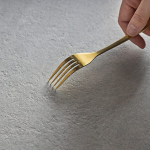 セラミック天板の硬度は非常に高く、天板の表面をナイフやフォーク、鉛筆でひっかいたりしても傷がつきません。