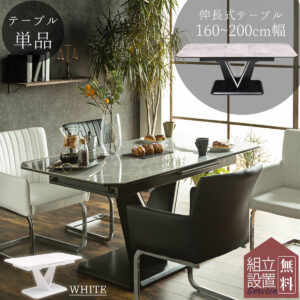 大理石調のツヤ感とV字になっていて目を惹く脚部が特徴的なダイニングです。