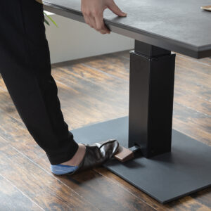 足元にあるペダルを踏みながら昇降させるタイプのテーブルです。