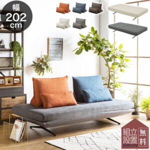 ベースソファのサイズは202 x 100cmとゆったりしており、簡易的なベッドとしても使用できるサイズなので急な来客があったりした際も便利です。