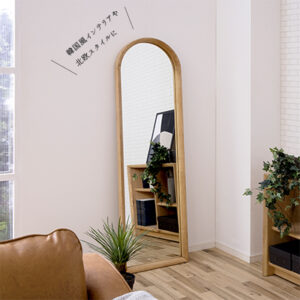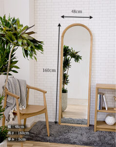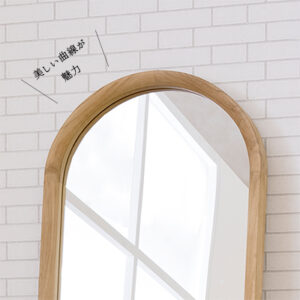 曲木加工のミラー上部は、 アーチ型の美しい曲線が描かれています。 こだわりの曲線がアクセントとなり、インテリアを 鮮やかに彩ります。