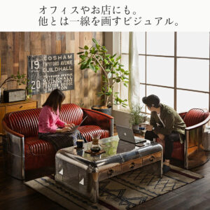 ダメージ加工が施されたビンテージ風の革とアルミフレームの組み合わせがお部屋のアクセントになること間違いなしです。