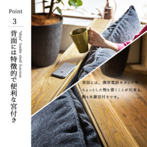背面には、携帯電話やカップ等、 ちょっとした物を置くことが出来る、 飾り木兼宮付きです。
