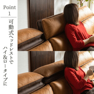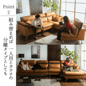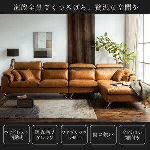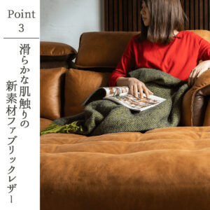 ソファの張地には新感覚素材のレザーファブリックを採用。