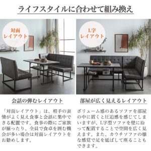 L字タイプにして部屋の隅に設置することでより空間を広く見せたり、対面レイアウトにして会話を楽しむこともできます。