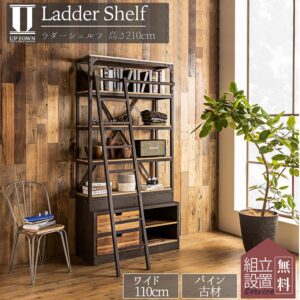 シンプルな木製のオープン棚では物足りなくなったあなたには、スチールと古材を組み合わせた個性的なオープン棚をオススメします。棚単体でのかっこよさはもちろんのこと、充分な高さがあり、収納力も抜群で、収納する物も映えたインテリアになります。