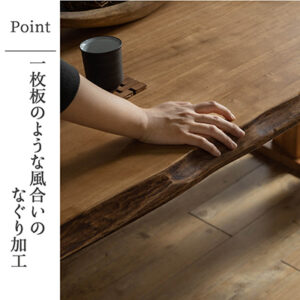 ”なぐり加工”は美しいテーブル天板をより美しく、より重厚かつスタイリッシュにしてくれる日本古来の加工です。