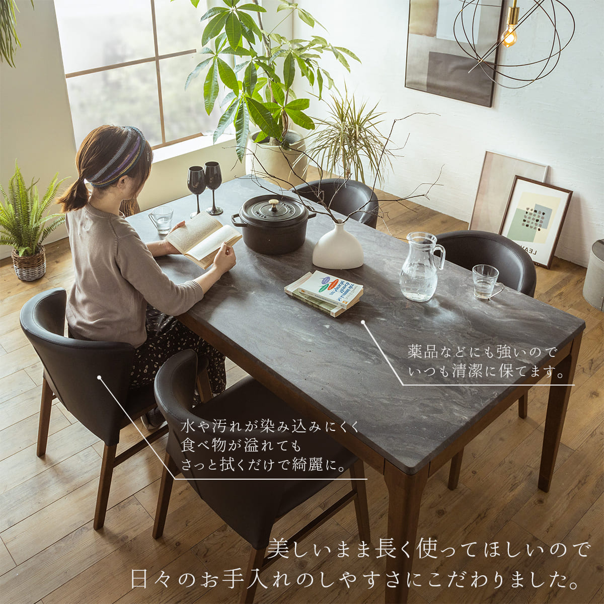 F01023_テーブル160 単品 傷に強い 大理石調 ダイニング 160cm マーブル 木製 熱に強い お手入れ簡単 汚れに強い 高級感 大理石風 天然素材 木脚 ダイニング チェア4脚 家族 豪華 モダンインテリア 4人掛け マット