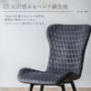 ベロア調の張地に独特なキルティング調のステッチ。 脚部はマットなスチール脚を採用していて、 ラグジュアリーでファショナブルな空間で食卓をお楽しみください。 |