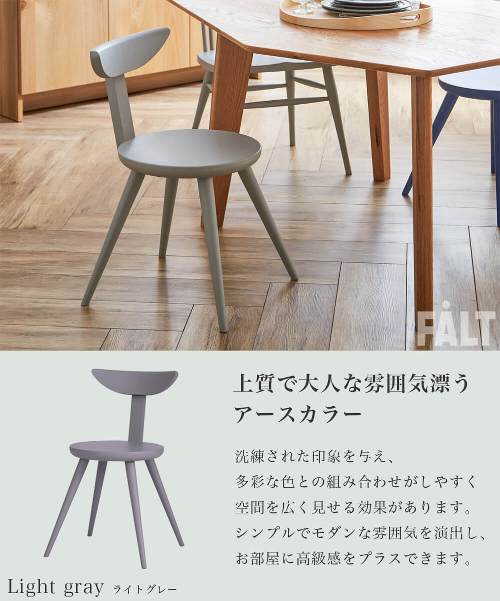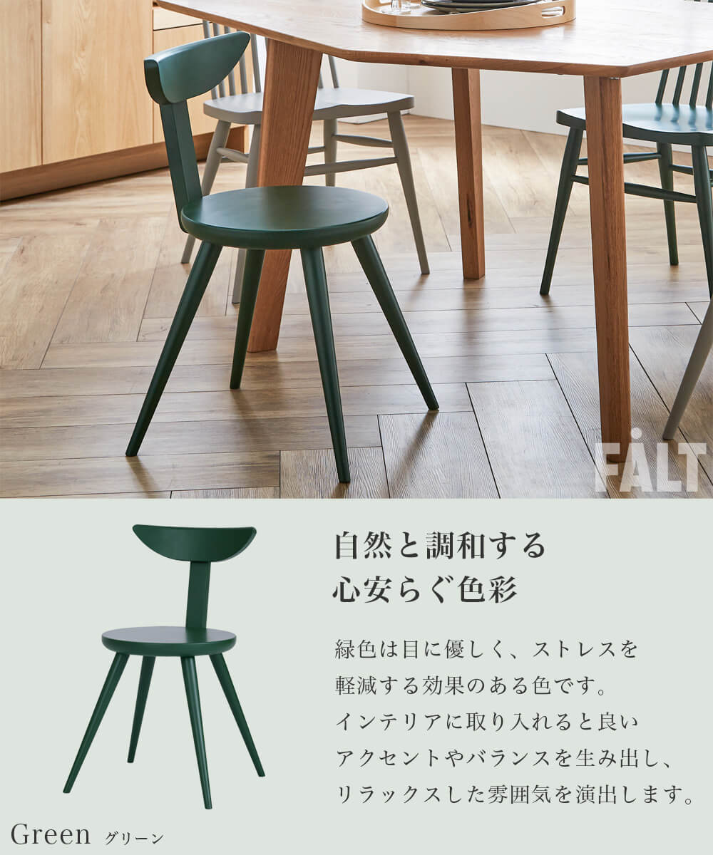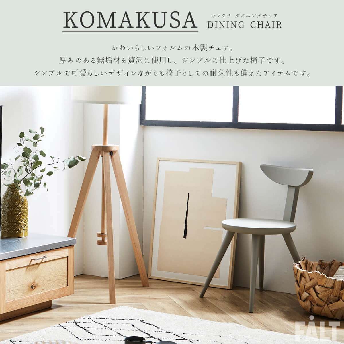 | 特徴 | かわいらいいフォルムの木製チェア。 厚みのある無垢材を贅沢に使用し、シンプルに仕上げた椅子です。 脚や背柱には目立った補強は入れていませんが、しっかりと強度が出せる点は家具の産地飛騨の匠ならではの技術です。 |