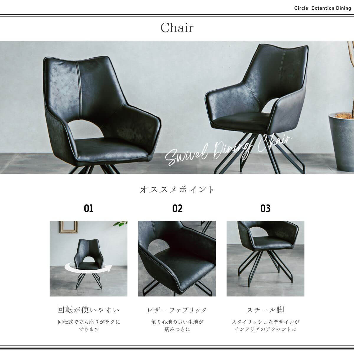 F01688_ダイニングチェア 回転 回転チェア レザーファブリック ファブリック 布 黒脚 ブラック脚 スチール脚 ラウンド ダイニング 食卓 チェア 椅子 アーム付き おしゃれ おすすめ モダン