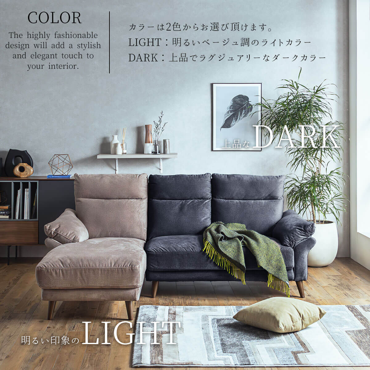 F01846_カウチソファー カウチ ソファ ソファー 幅221cm 221cm KD 3人掛け 3人用 3P 撥水加工 ファブリック 布 ベロア調 木製脚 北欧 モダン おしゃれ おすすめ 左右 選択可能 ルンバブル お掃除ロボット 開梱設置付き