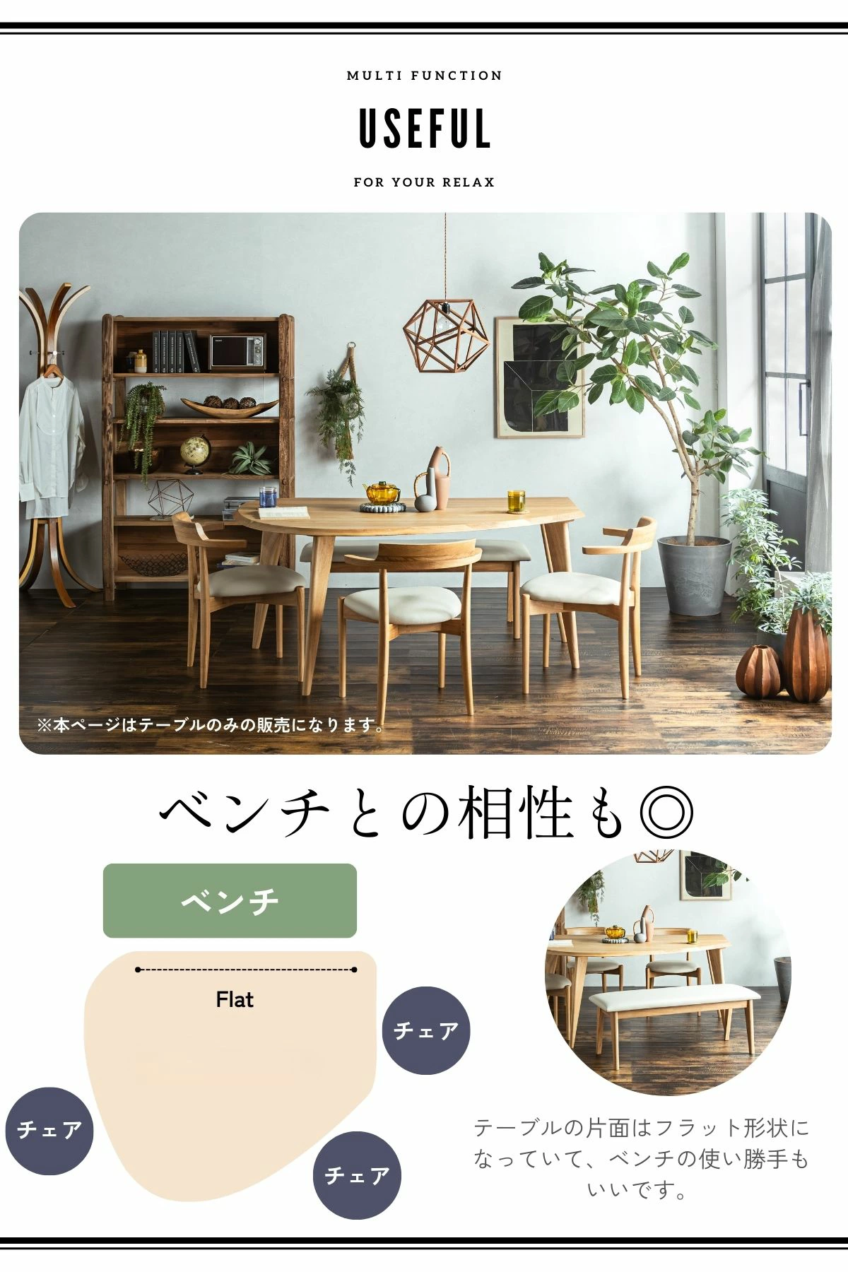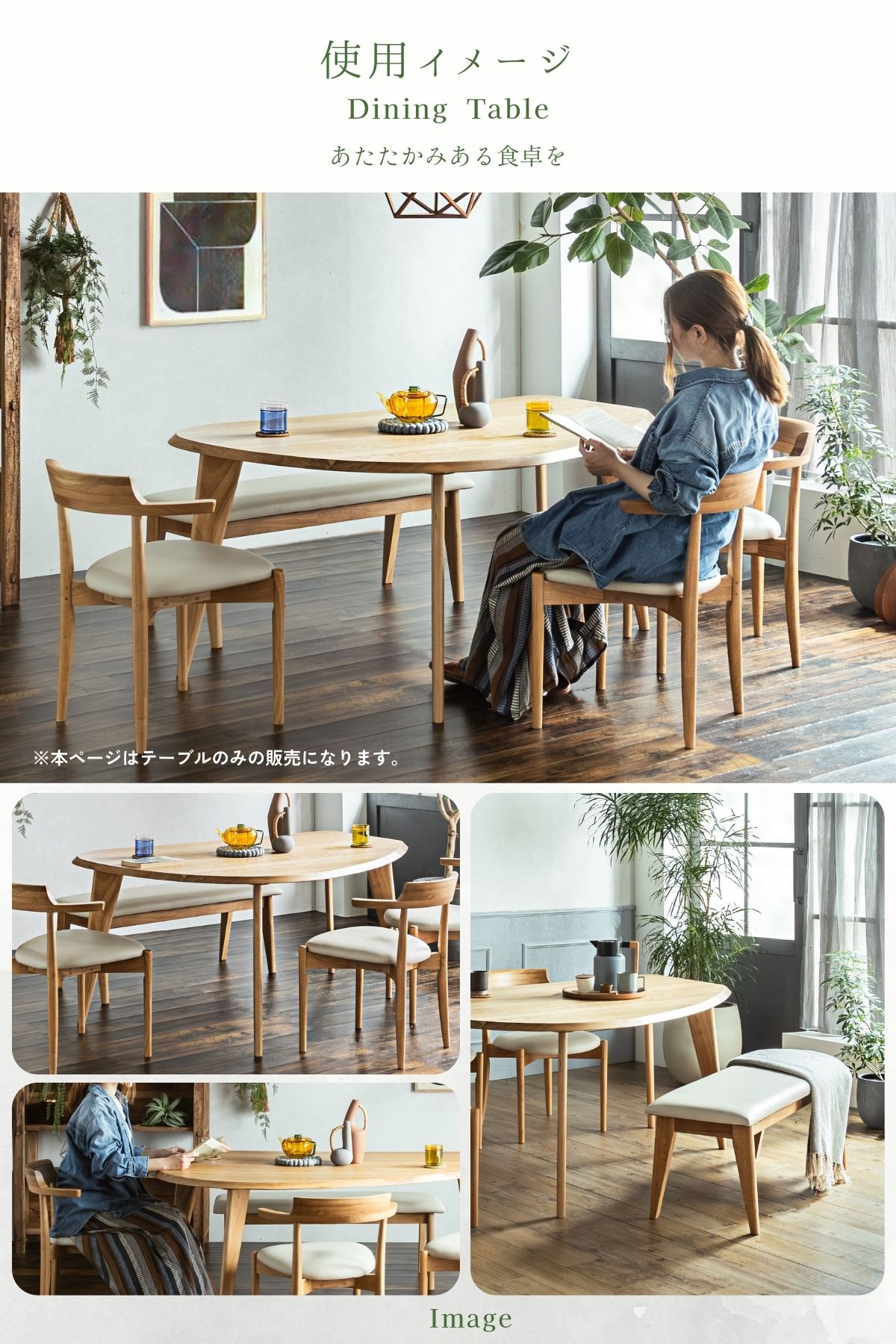 特徴 | ラバーウッド無垢材とオーク突板を使用した、天然木の風合いを感じられるダイニングテーブル。 北欧風のナチュラルデザインで、同シリーズのチェアやベンチと合わせれば、統一感あるダイニング空間に。 単品販売だから、買い足しやレイアウト変更にもおすすめです。 |