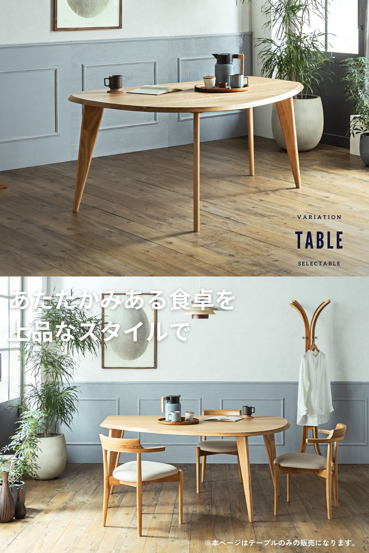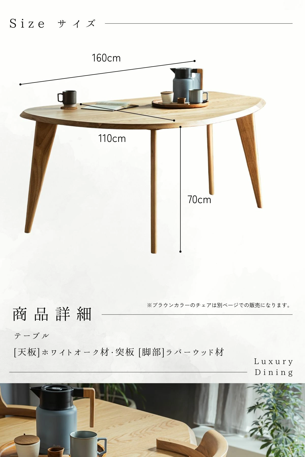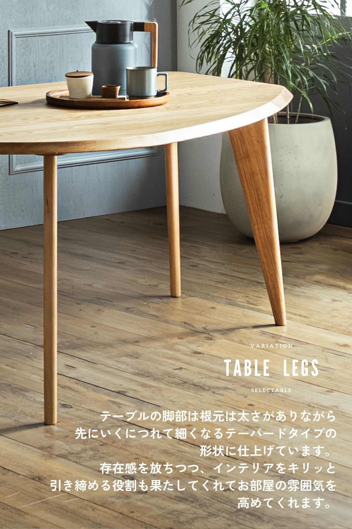 素材/材質 | [天板]ホワイトオーク材・突板 [脚部]ラバーウッド材 |