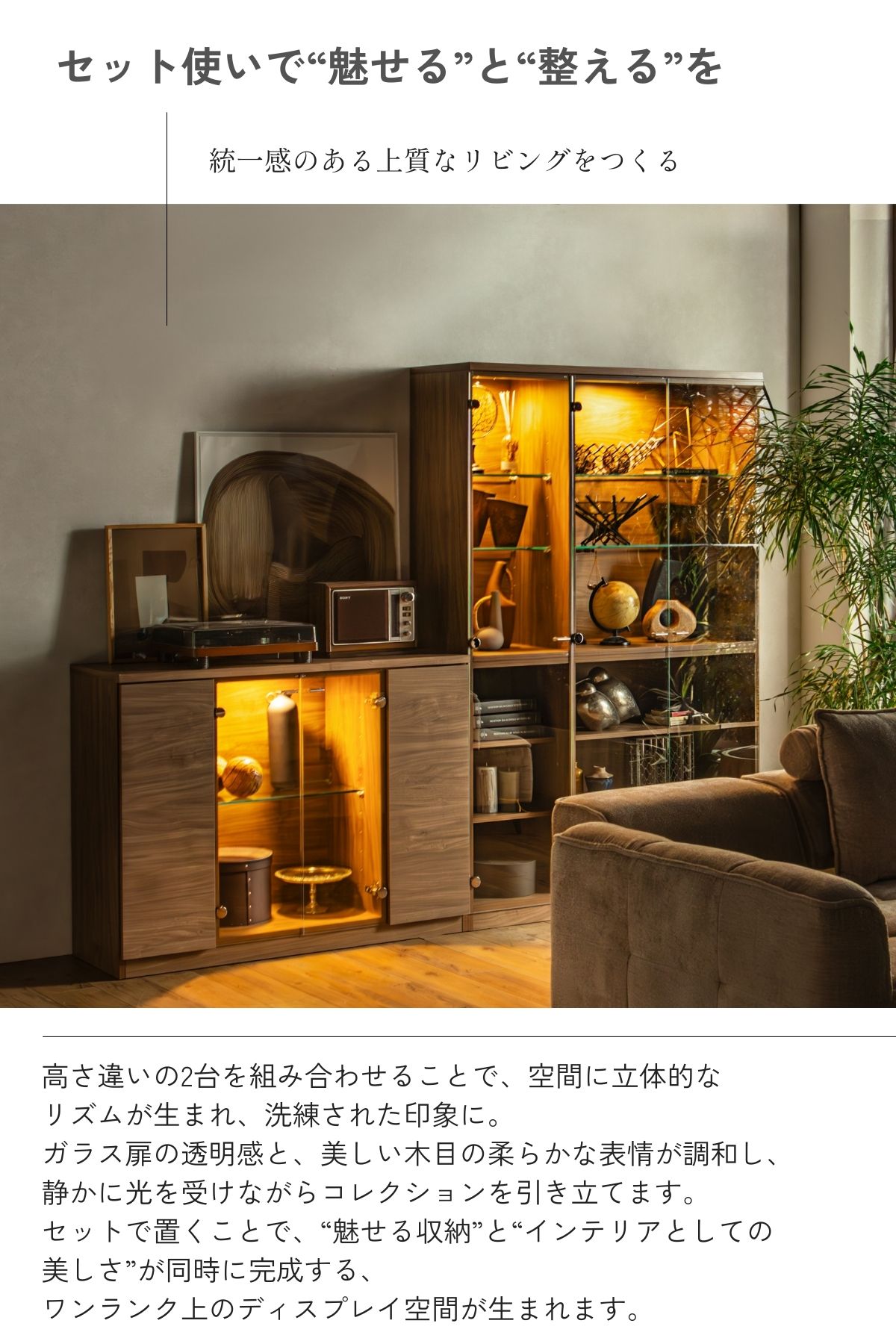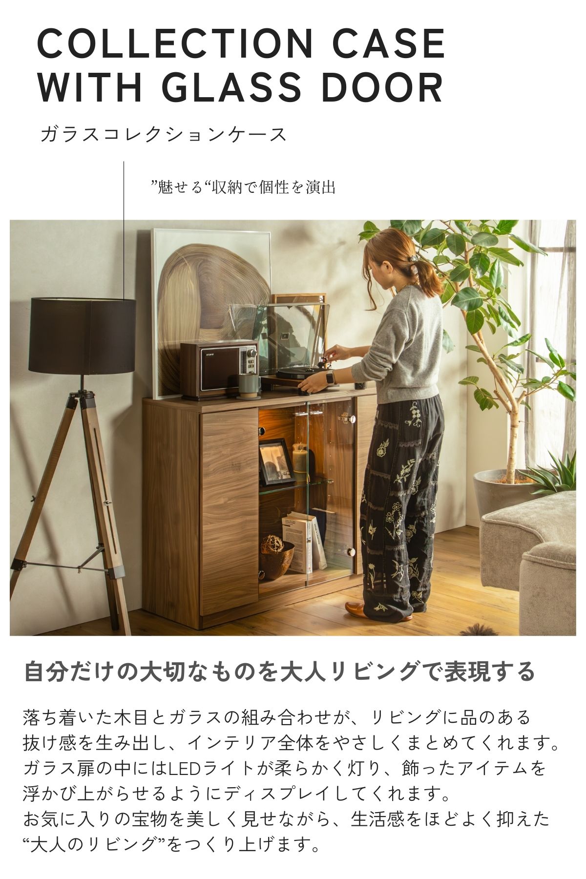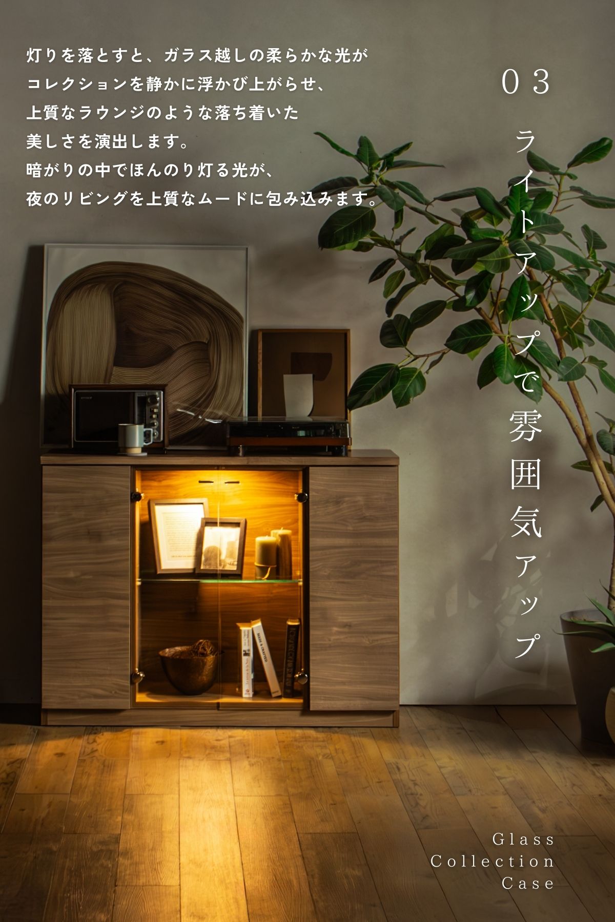 ガラス扉の中にはLEDライトが柔らかく灯り、