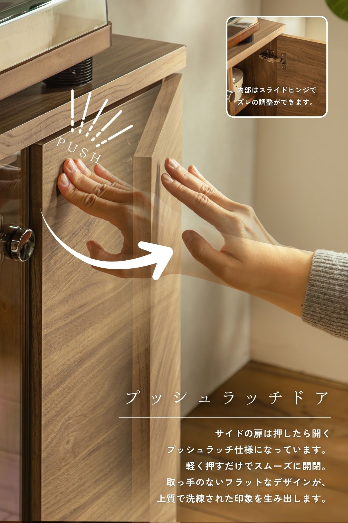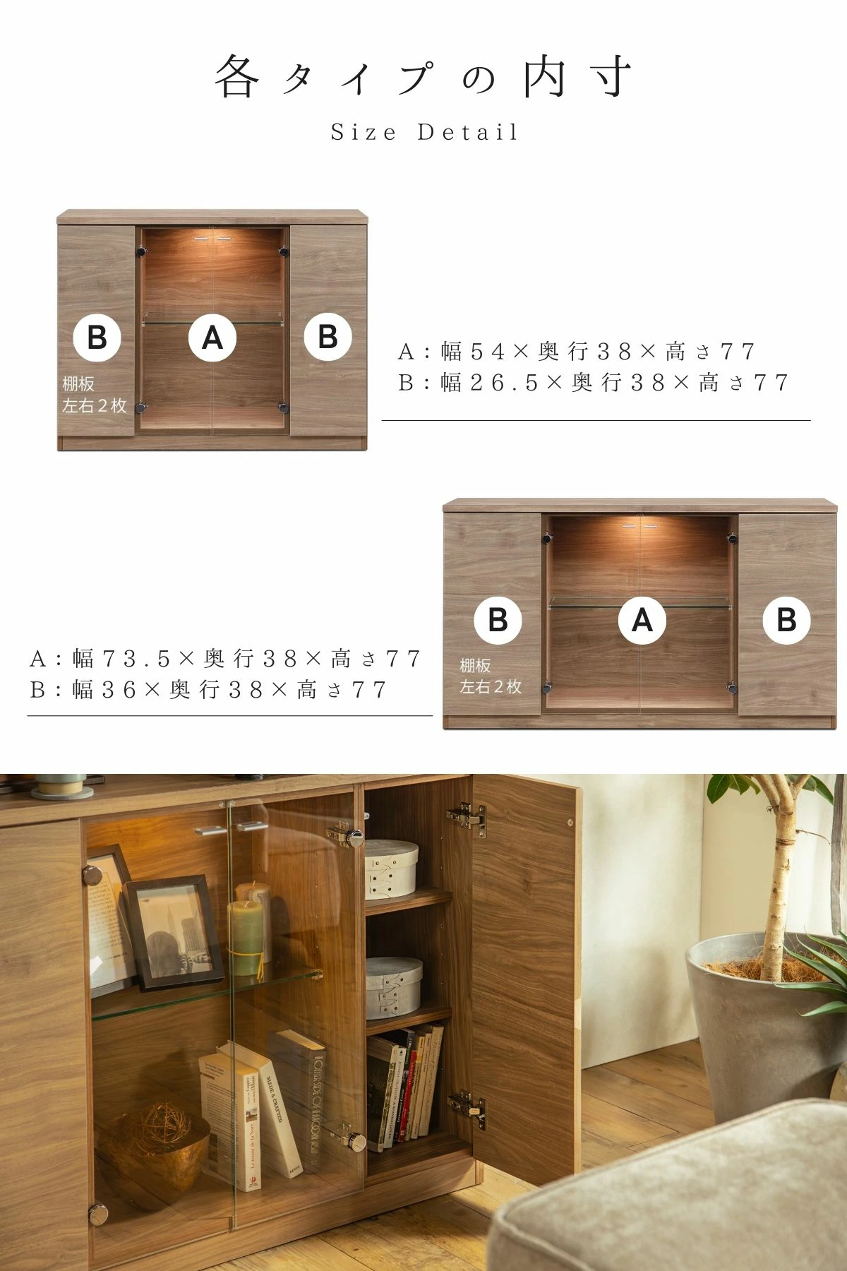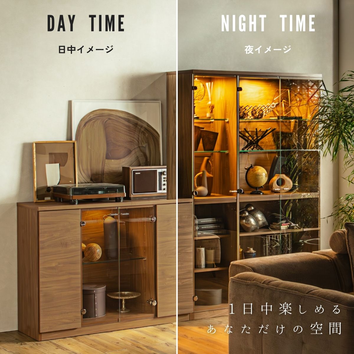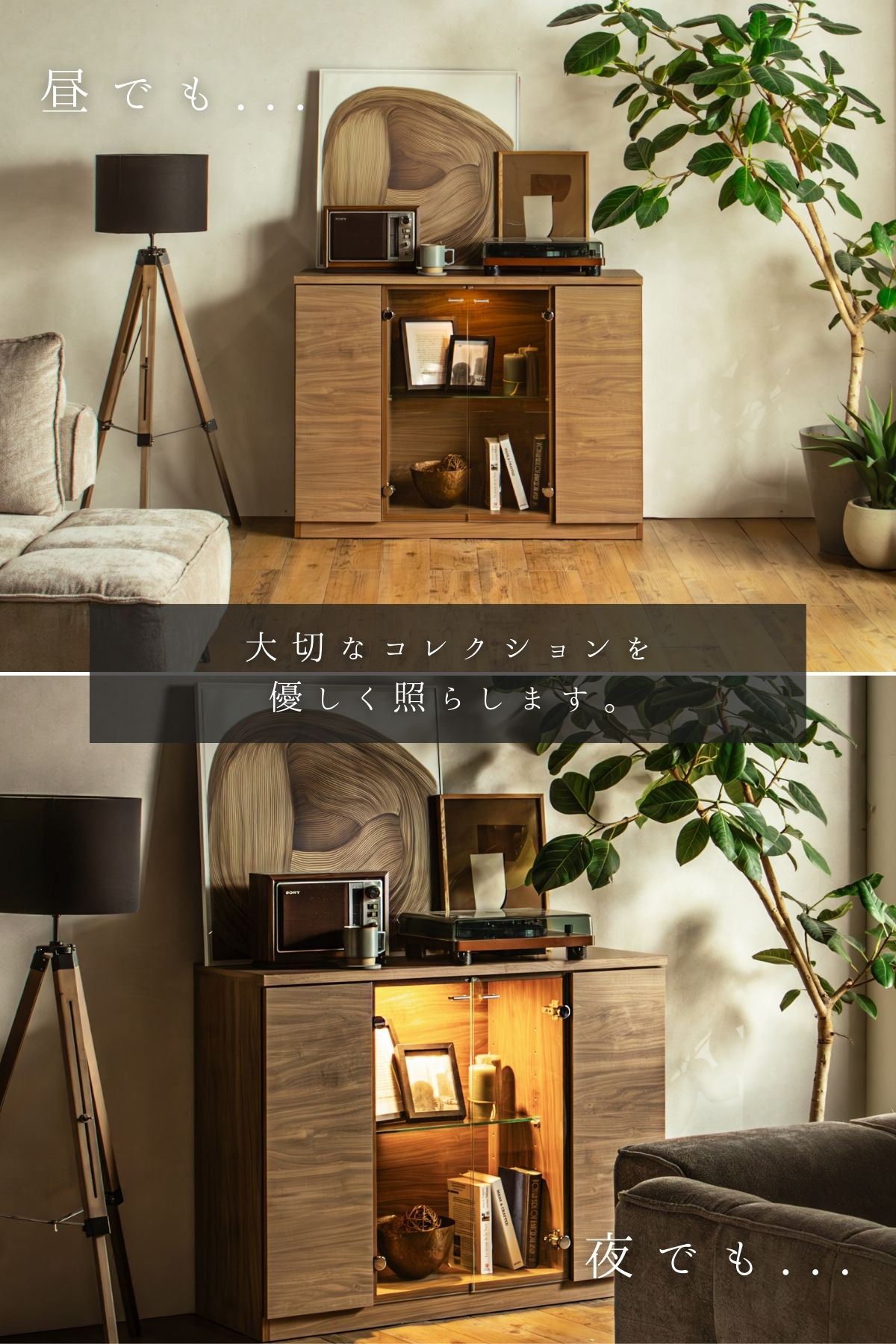 ガラス扉の中にはLEDライトが柔らかく灯り、