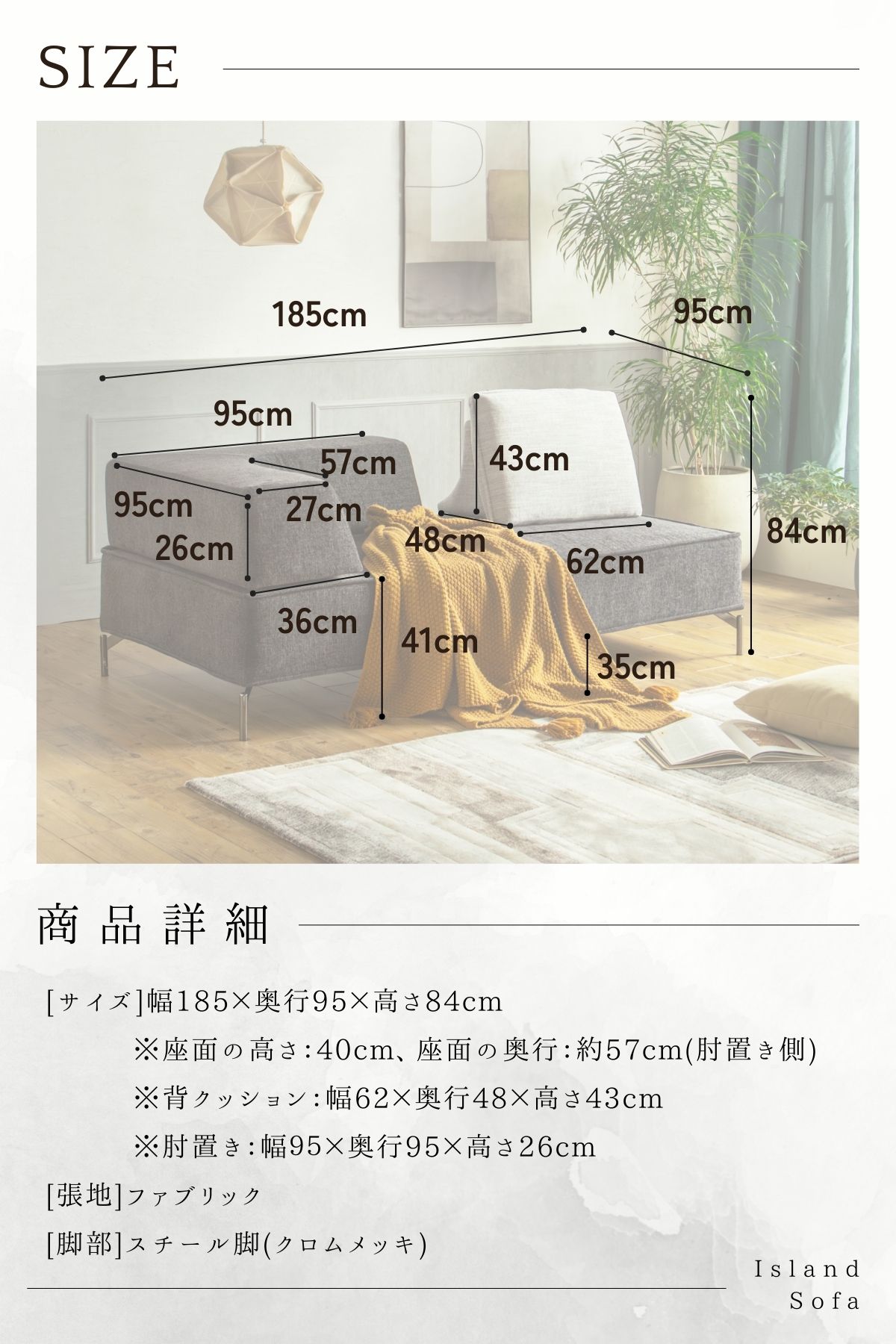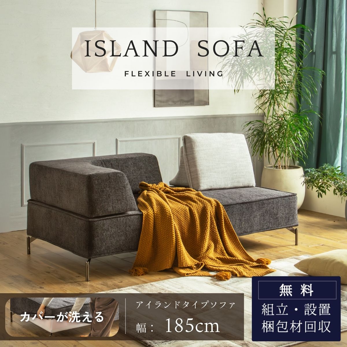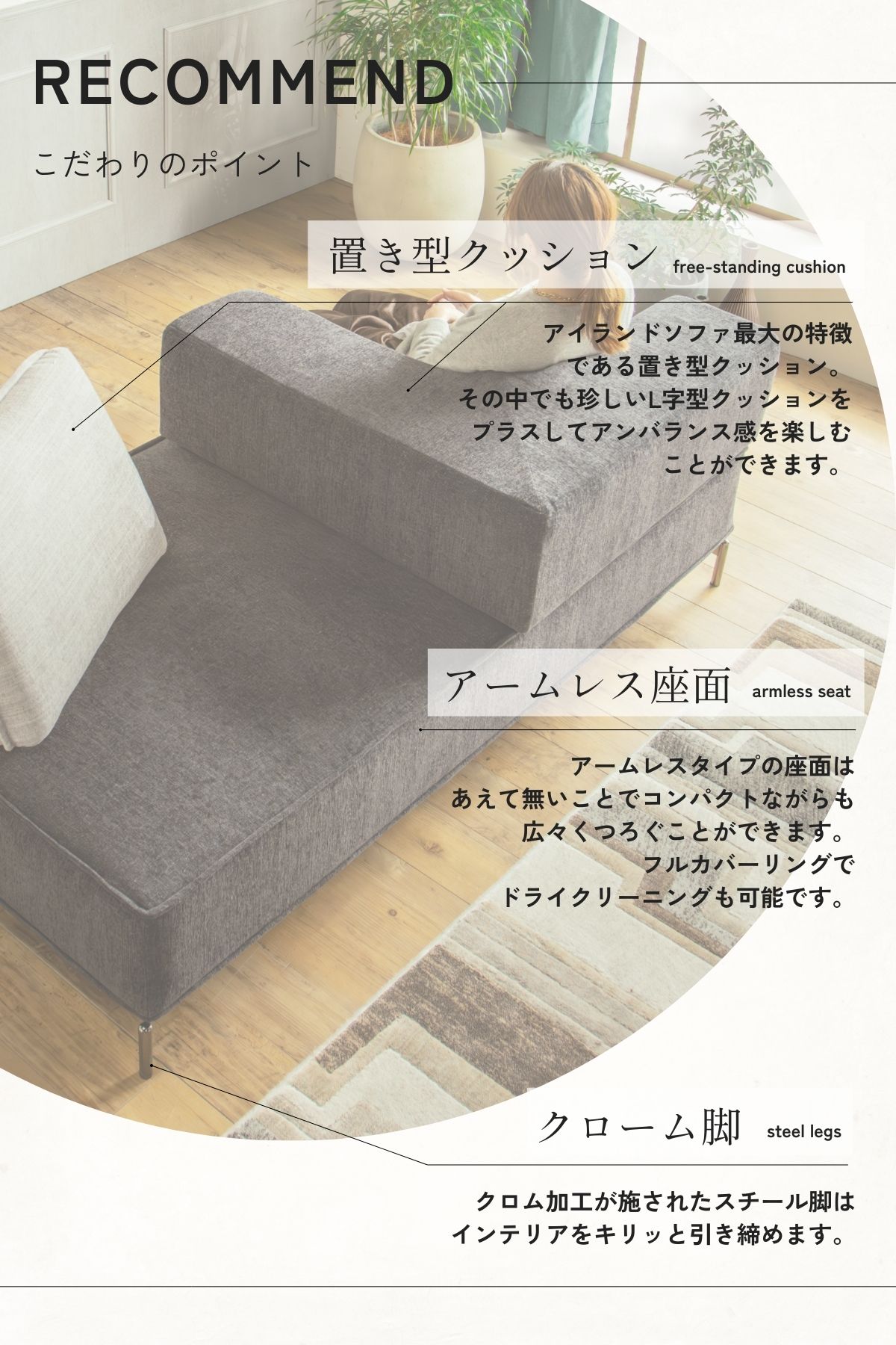 F02126_アイランドソファ ソファ ソファー 幅185cm 置き型クッション L字肘付き レイアウト自由 ローソファ 家族でくつろぐ 洗えるカバー クロム脚 おしゃれ 北欧 モダン ルンバブル お掃除ロボット 端っこ 角 コーナー 床に置ける ファミリー 開梱設置付き