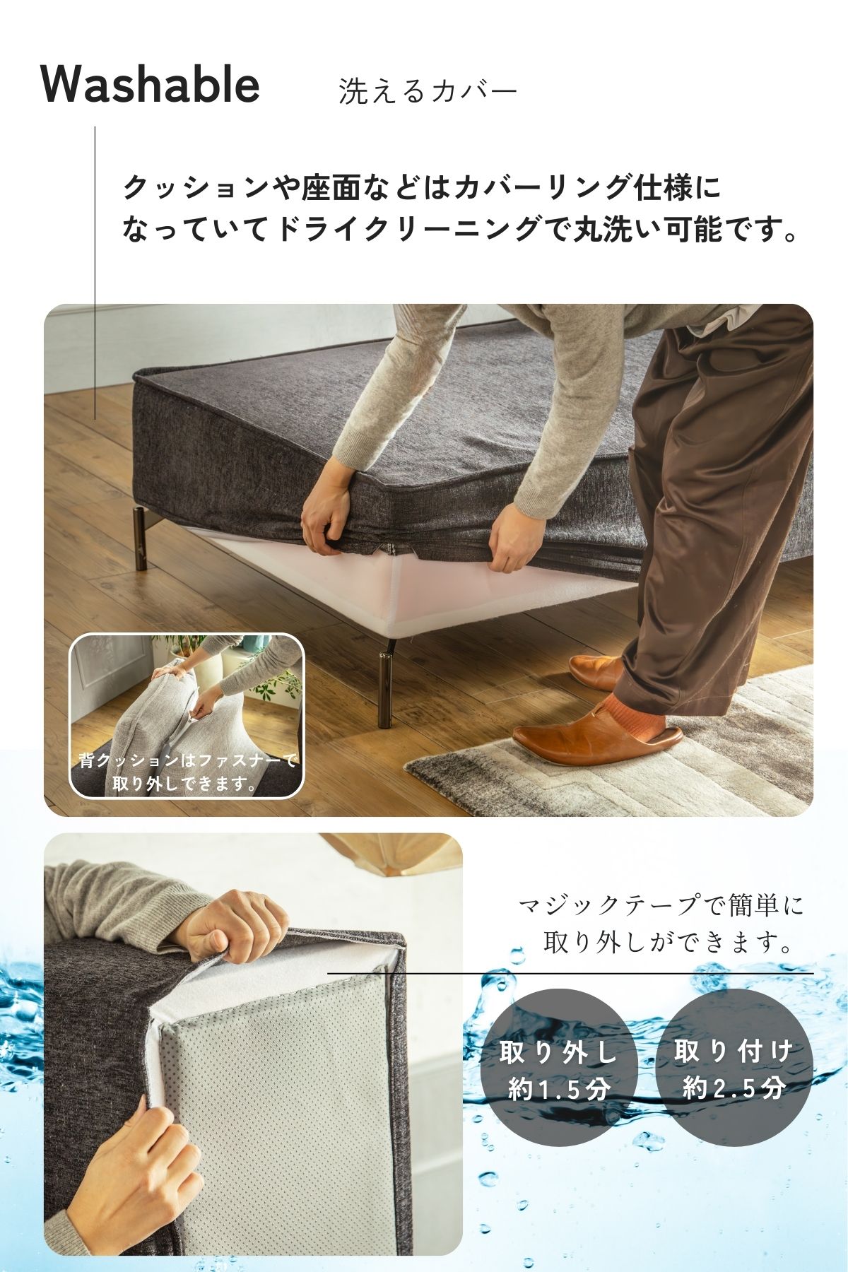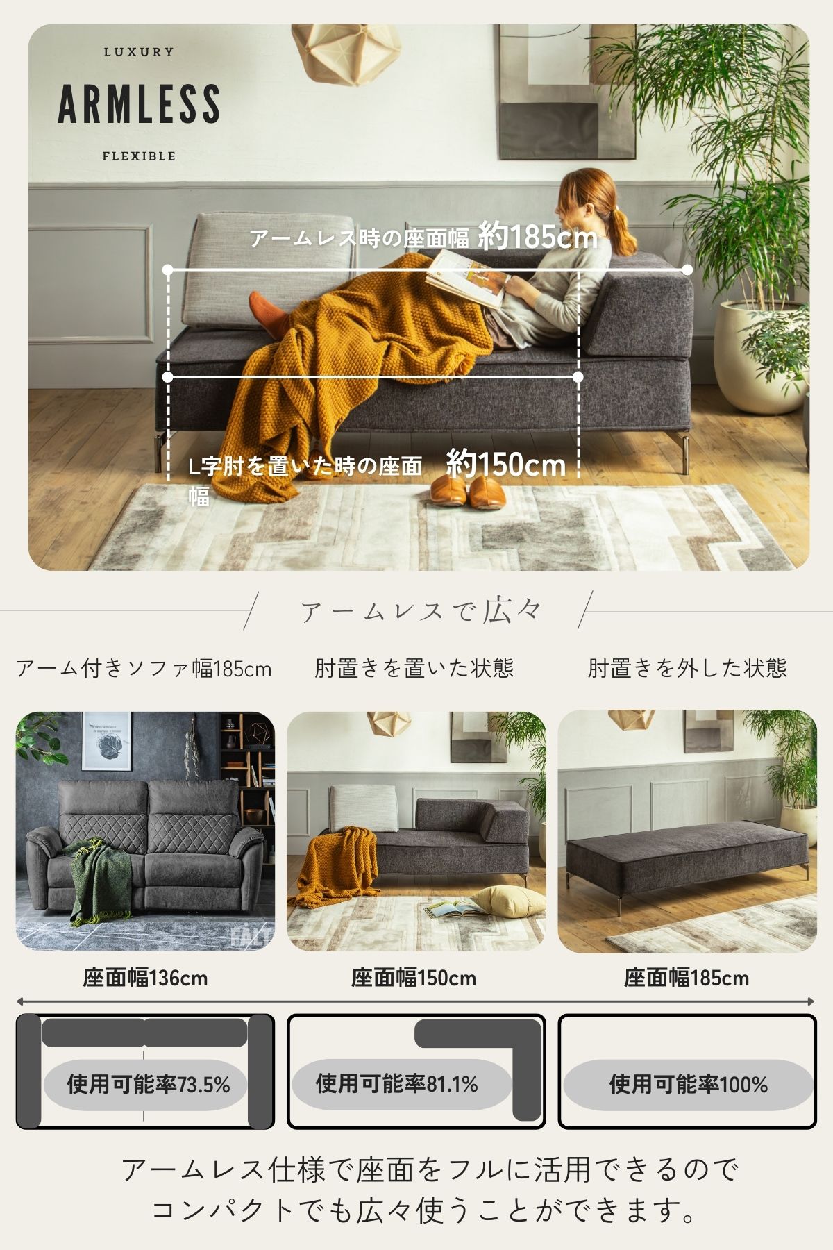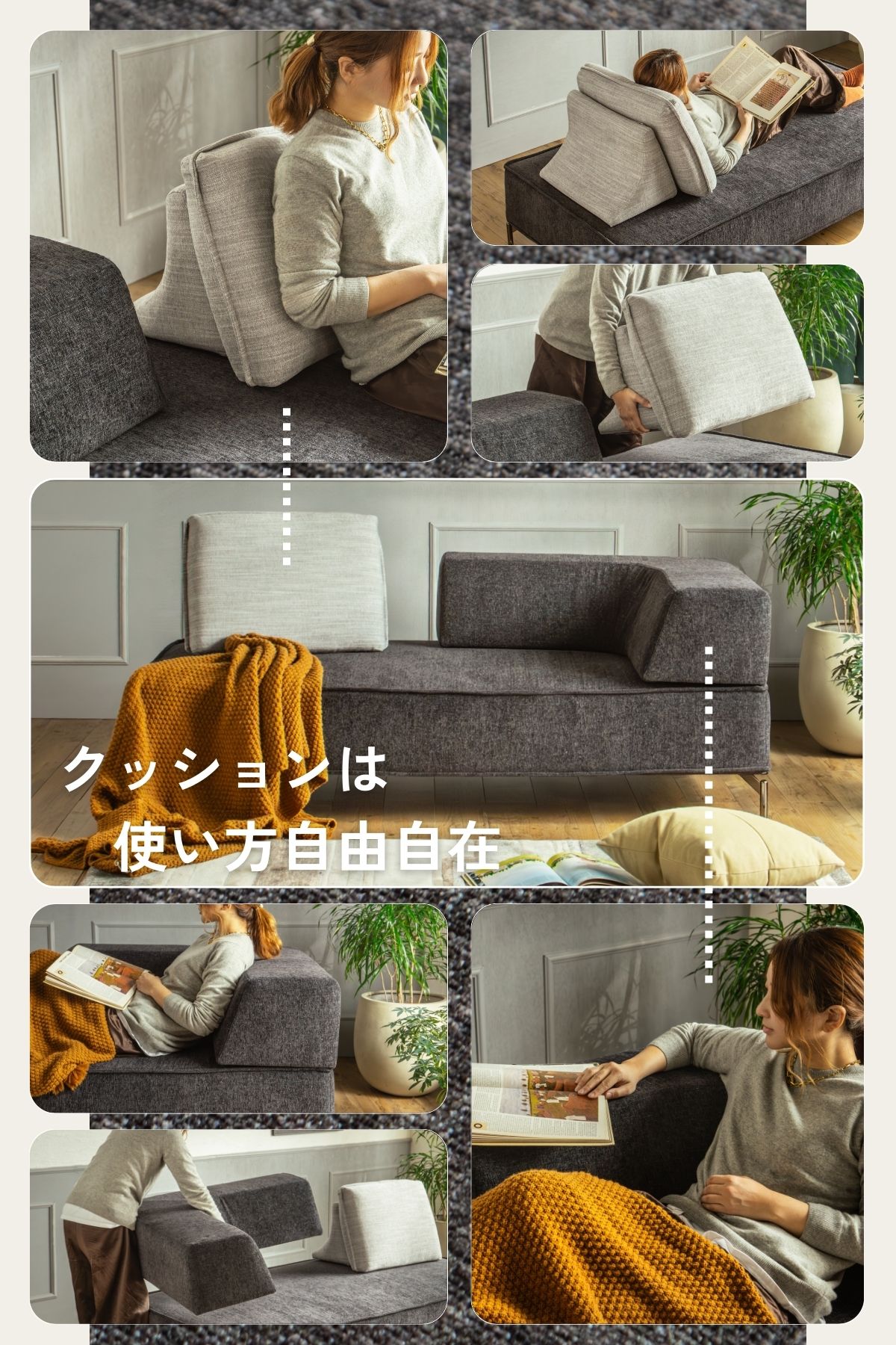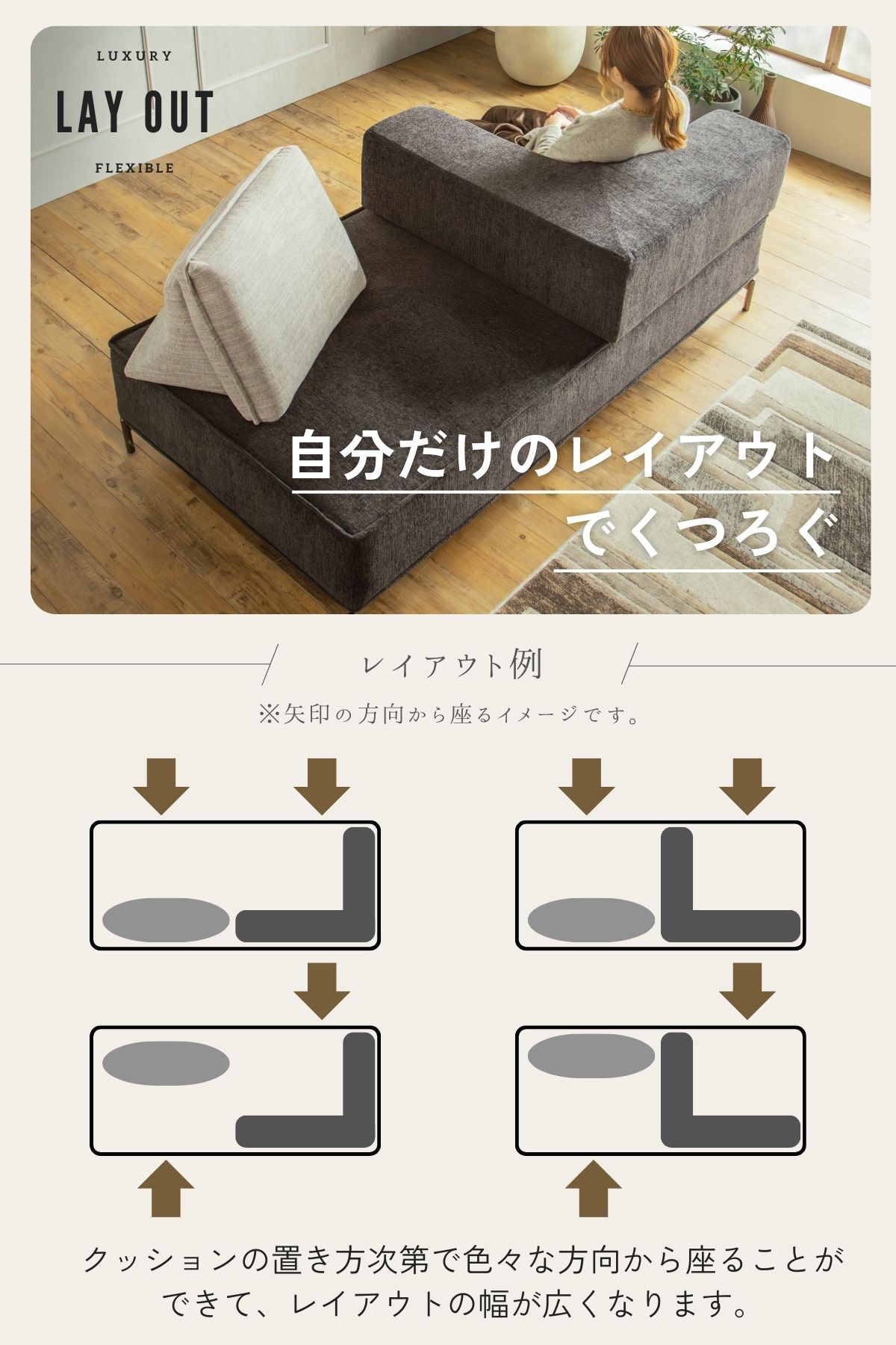 F02126_アイランドソファ ソファ ソファー 幅185cm 置き型クッション L字肘付き レイアウト自由 ローソファ 家族でくつろぐ 洗えるカバー クロム脚 おしゃれ 北欧 モダン ルンバブル お掃除ロボット 端っこ 角 コーナー 床に置ける ファミリー 開梱設置付き