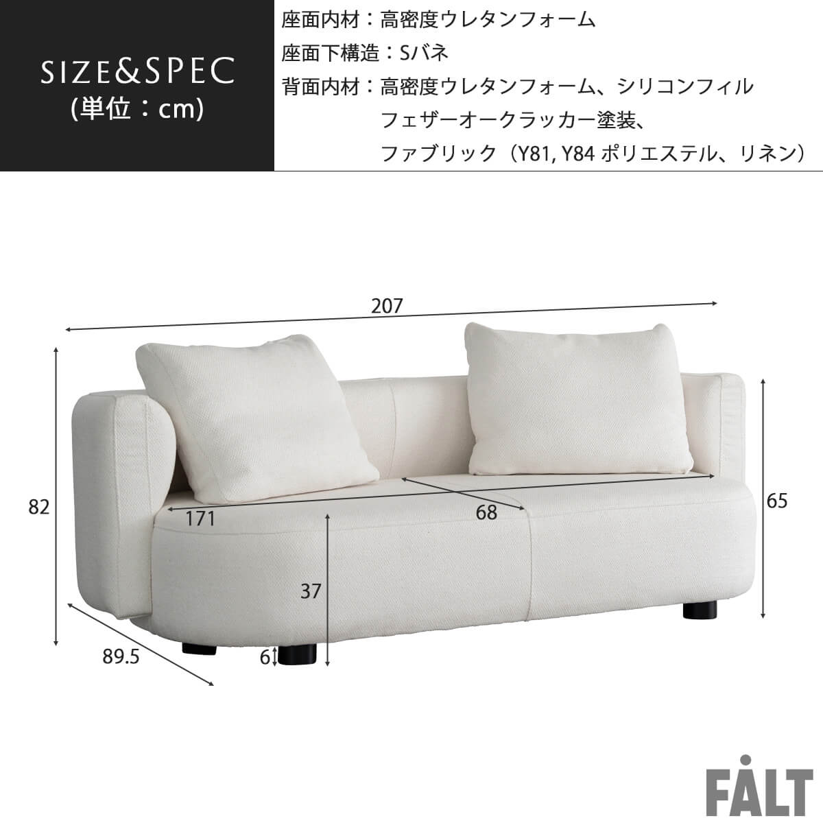 | サイズ | サイズ:幅207×奥行89.5×高さ82cm(座面高37cm) |