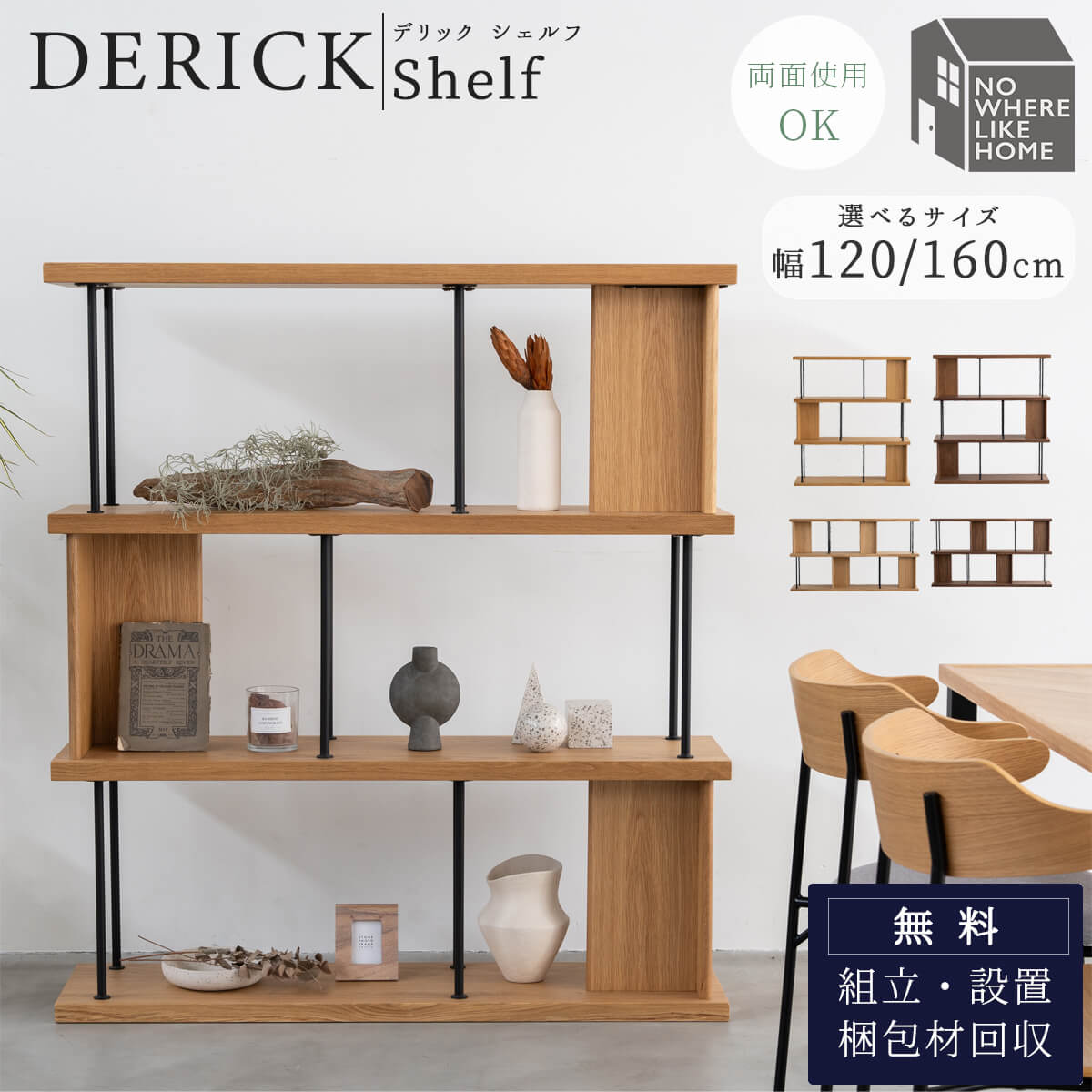 f02178_シェルフ 棚 デリック おしゃれ 北欧風 関家具 ノーウェアライクホーム NWLH 120cm 幅120 160cm 幅160 韓国風 オーク ウォルナット サイド 開梱設置付き