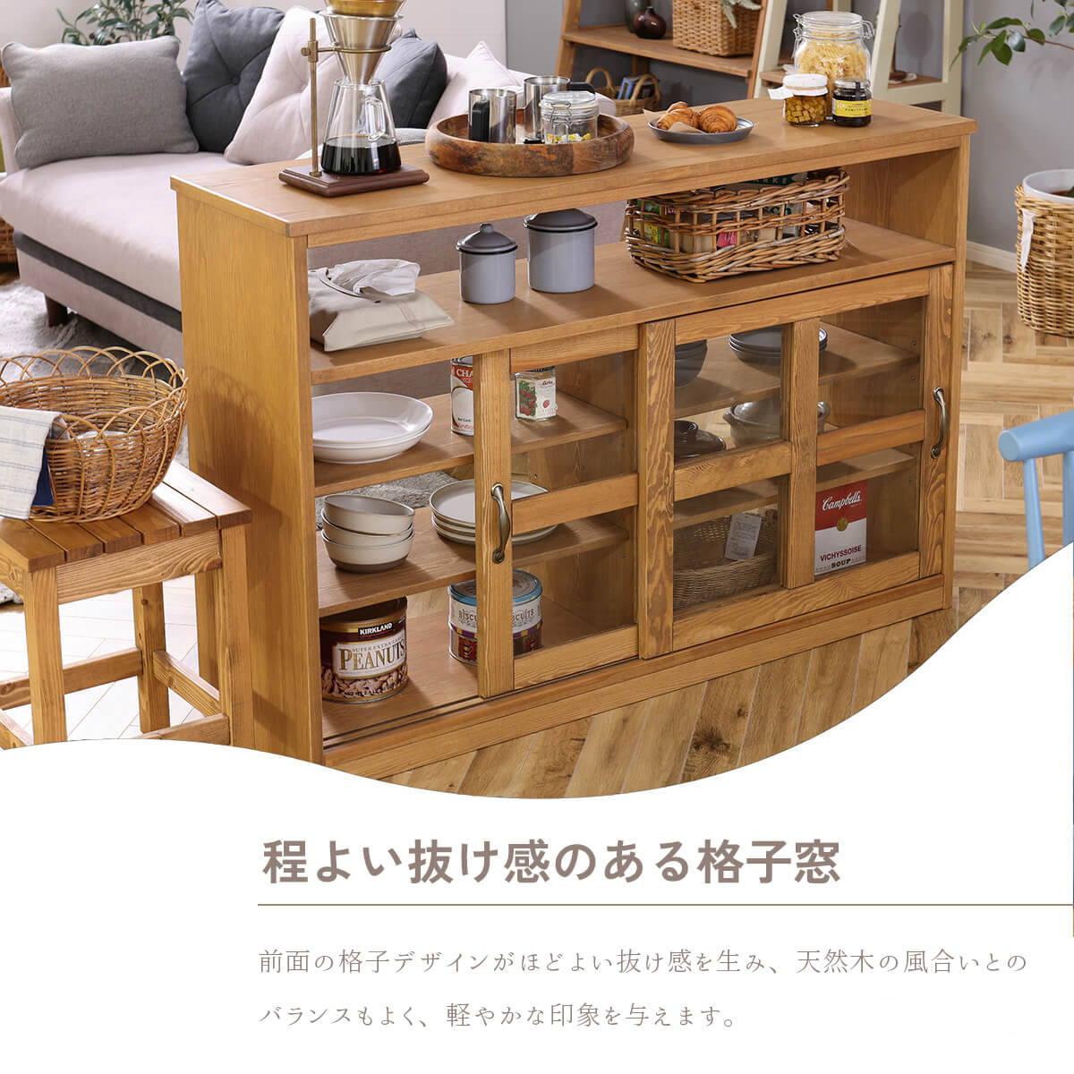 お気に入りの物を収納しながら飾れます。お部屋の間仕切りとしても使用できます。