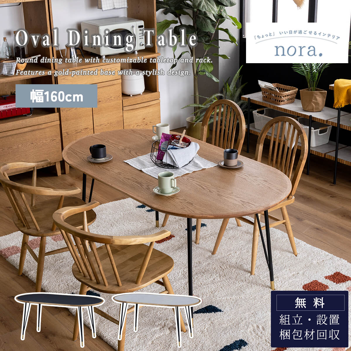f02180_関家具 nora 円形 円卓 丸形 楕円 オーバル ダイニングテーブル マルル テーブル単品 幅160cm ノラ 天然木 オーク メラミン 大理石調 引き出し カフェ 食事 食卓テーブル ダイニング 北欧 韓国風 開梱設置付き