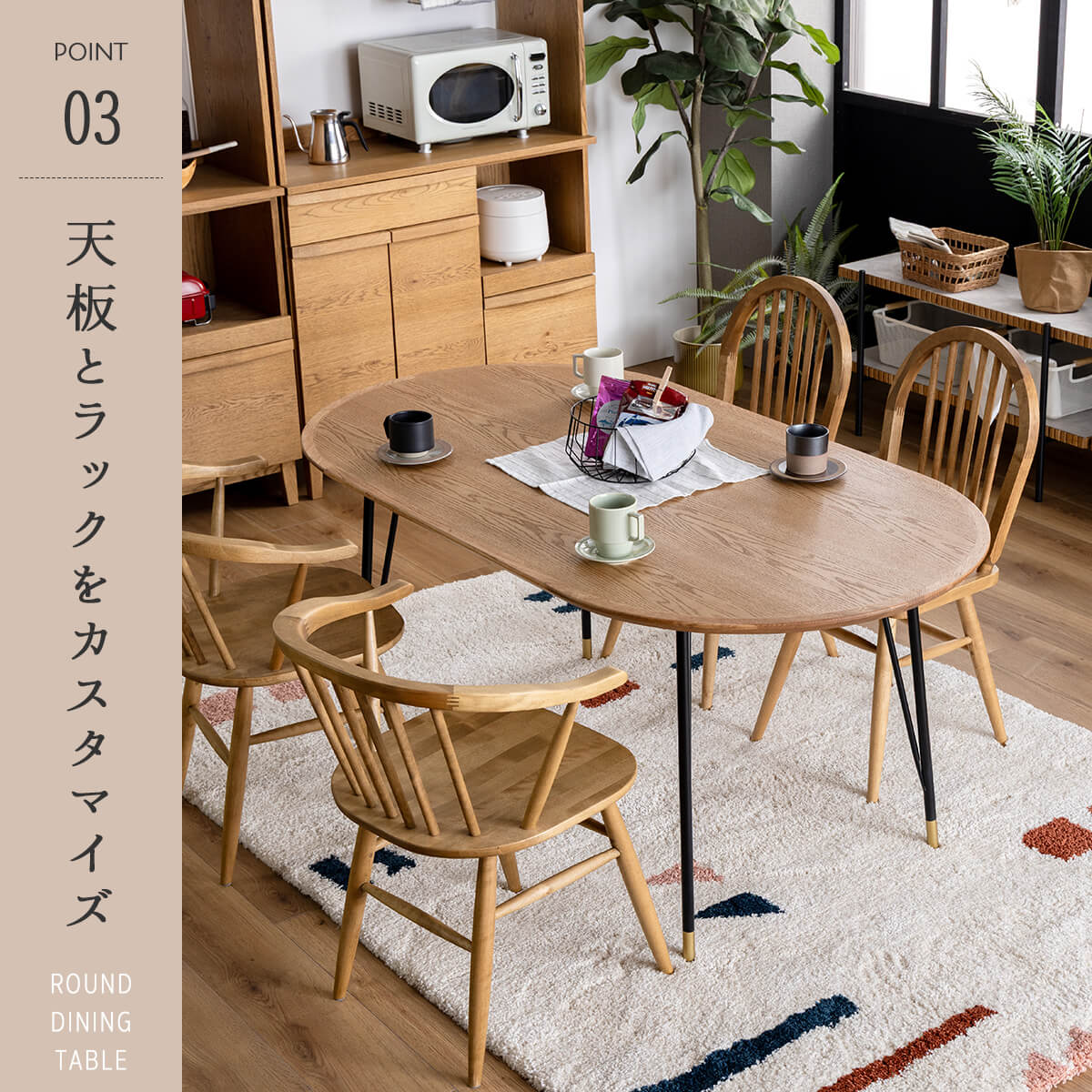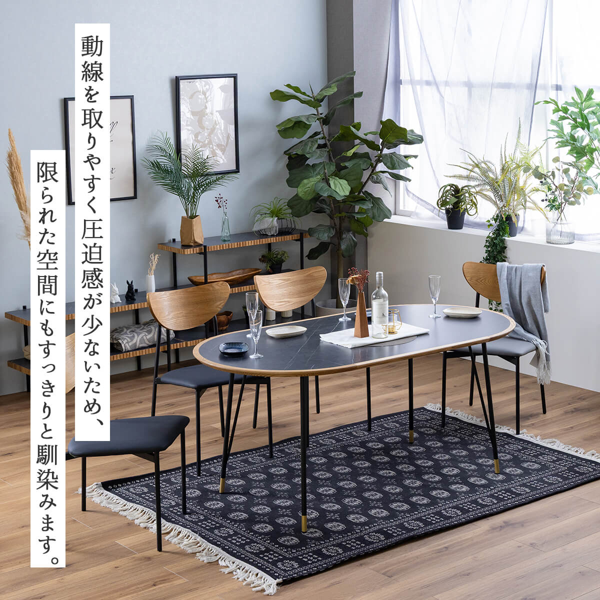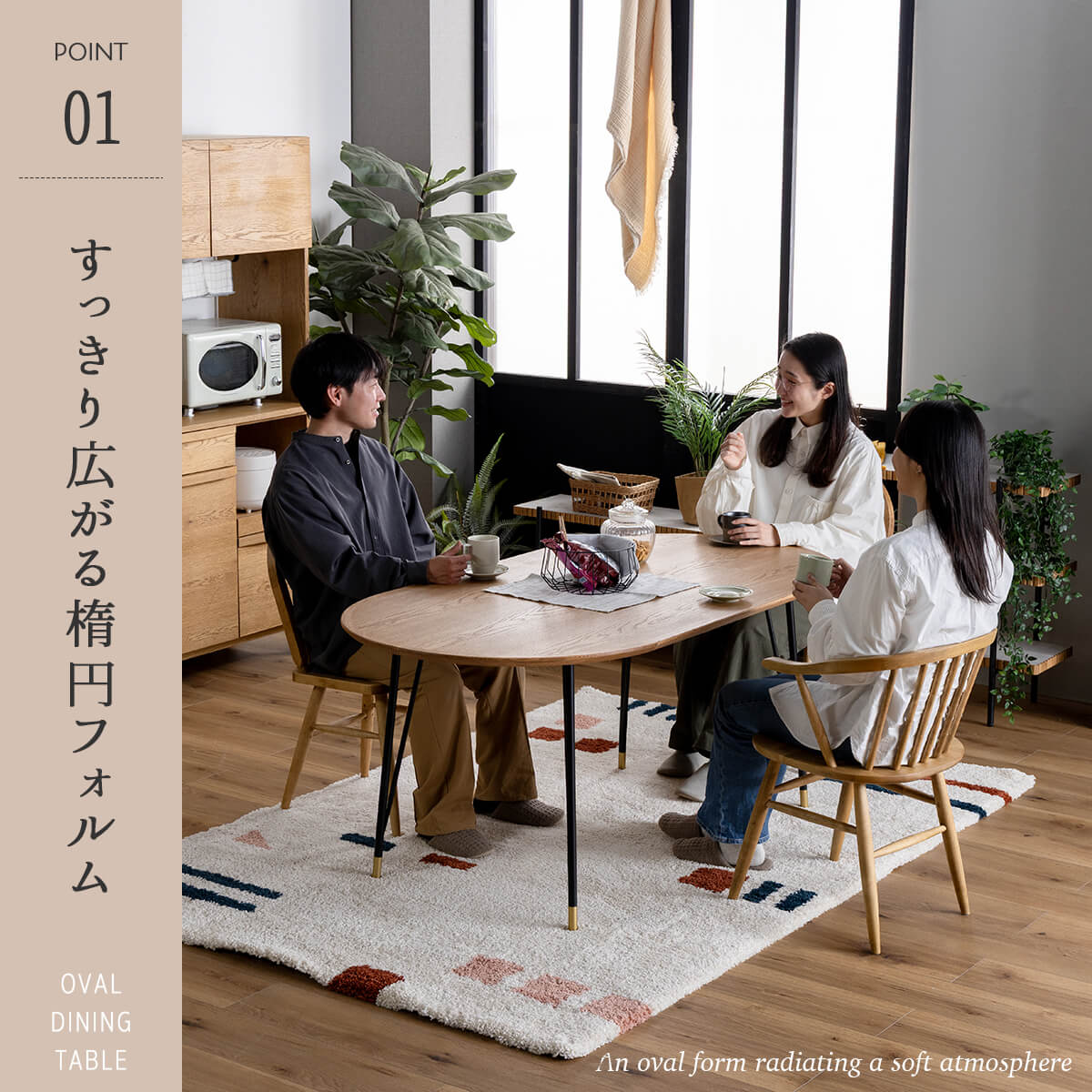 圧迫感のない丸いフォルムで空間を広く見せつつ、動線もスムーズに。