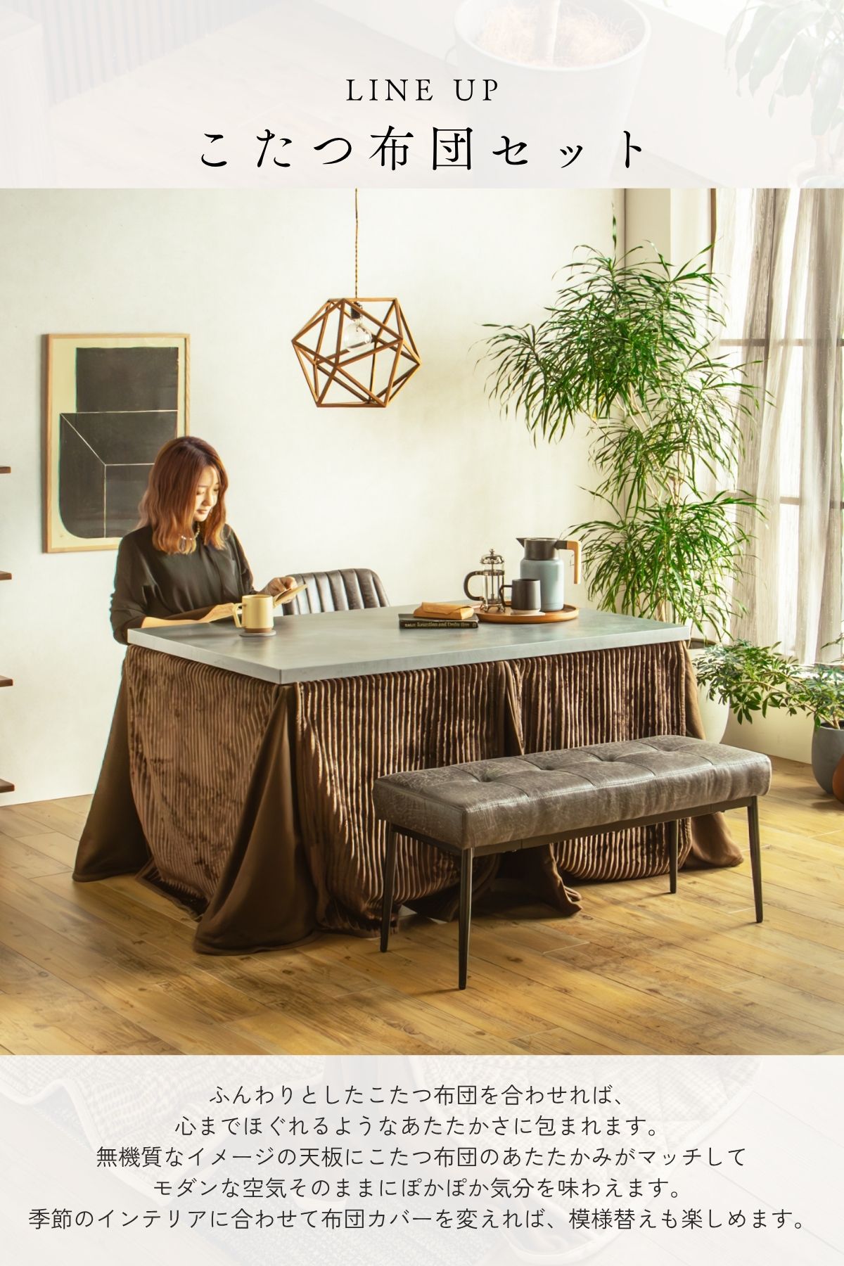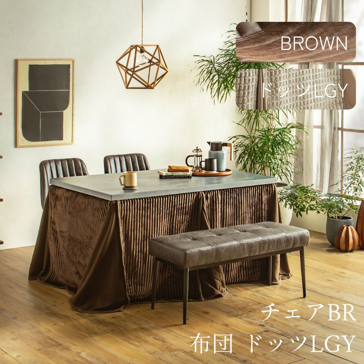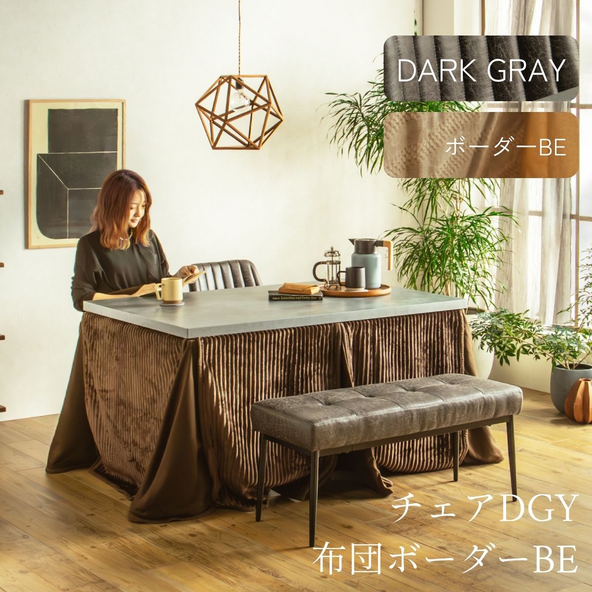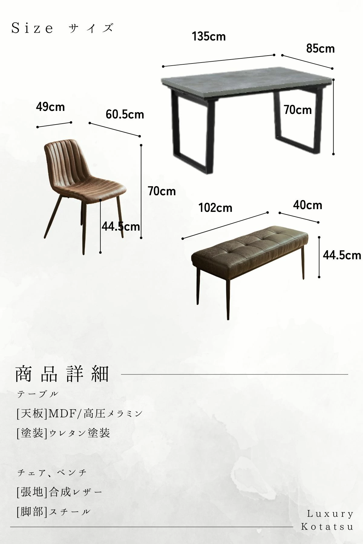 F02182_ダイニングこたつセット 4点 こたつ チェア ベンチ セット 長方形 135×85cm モルタル風天板 メラミン おしゃれ 北欧風 インダストリアル こたつ 家族 一人暮らし