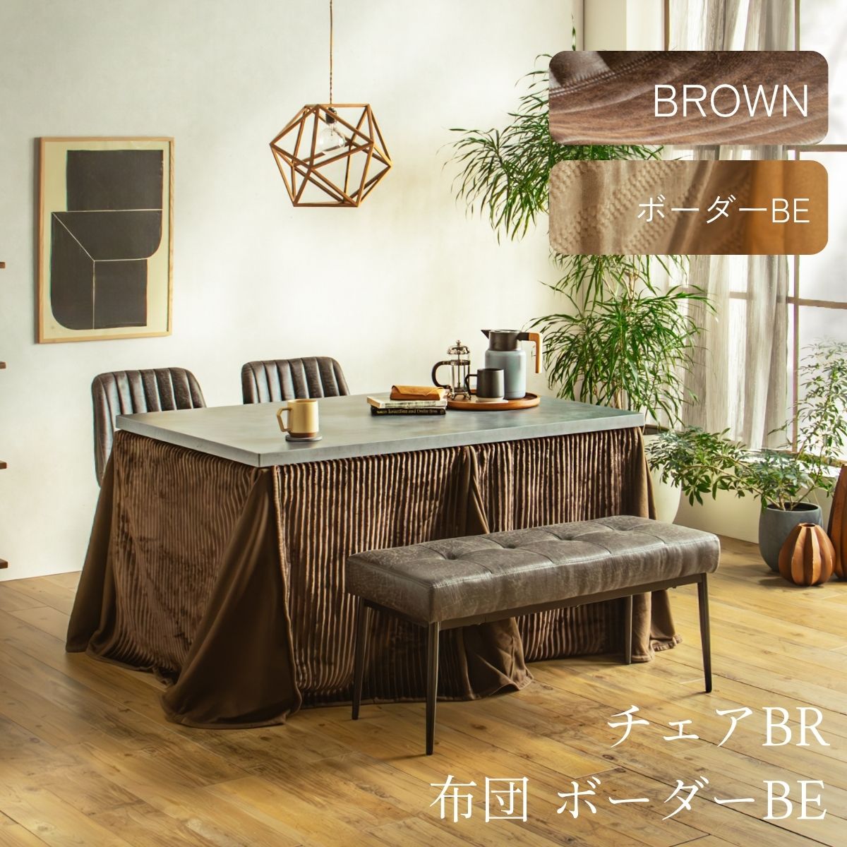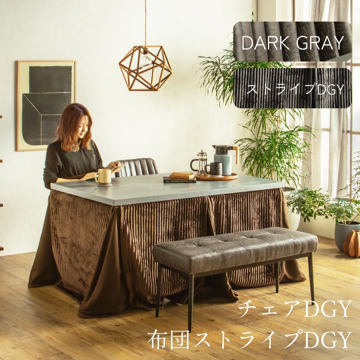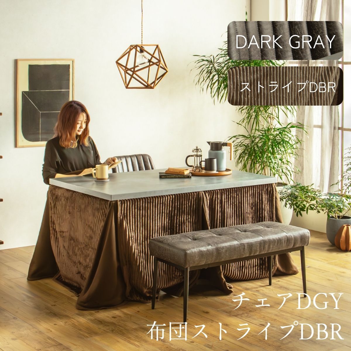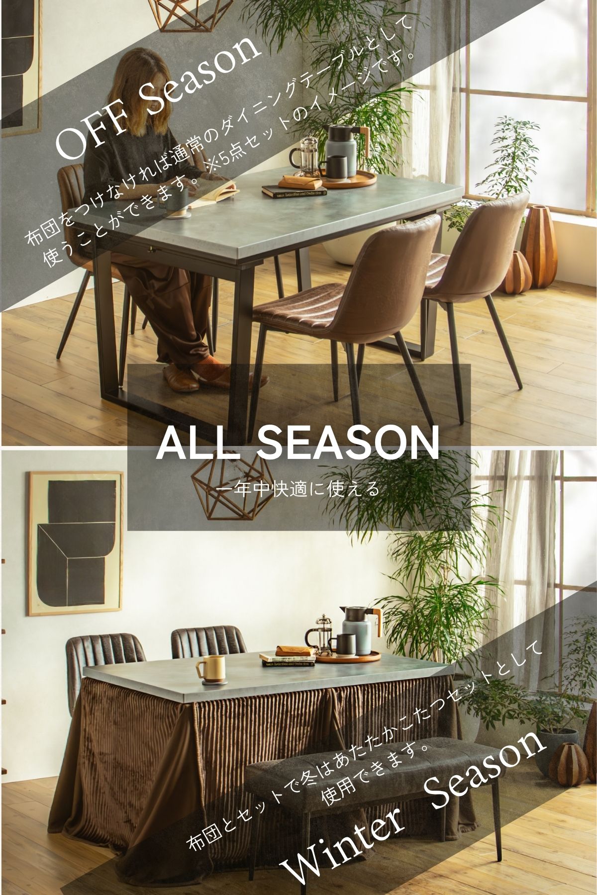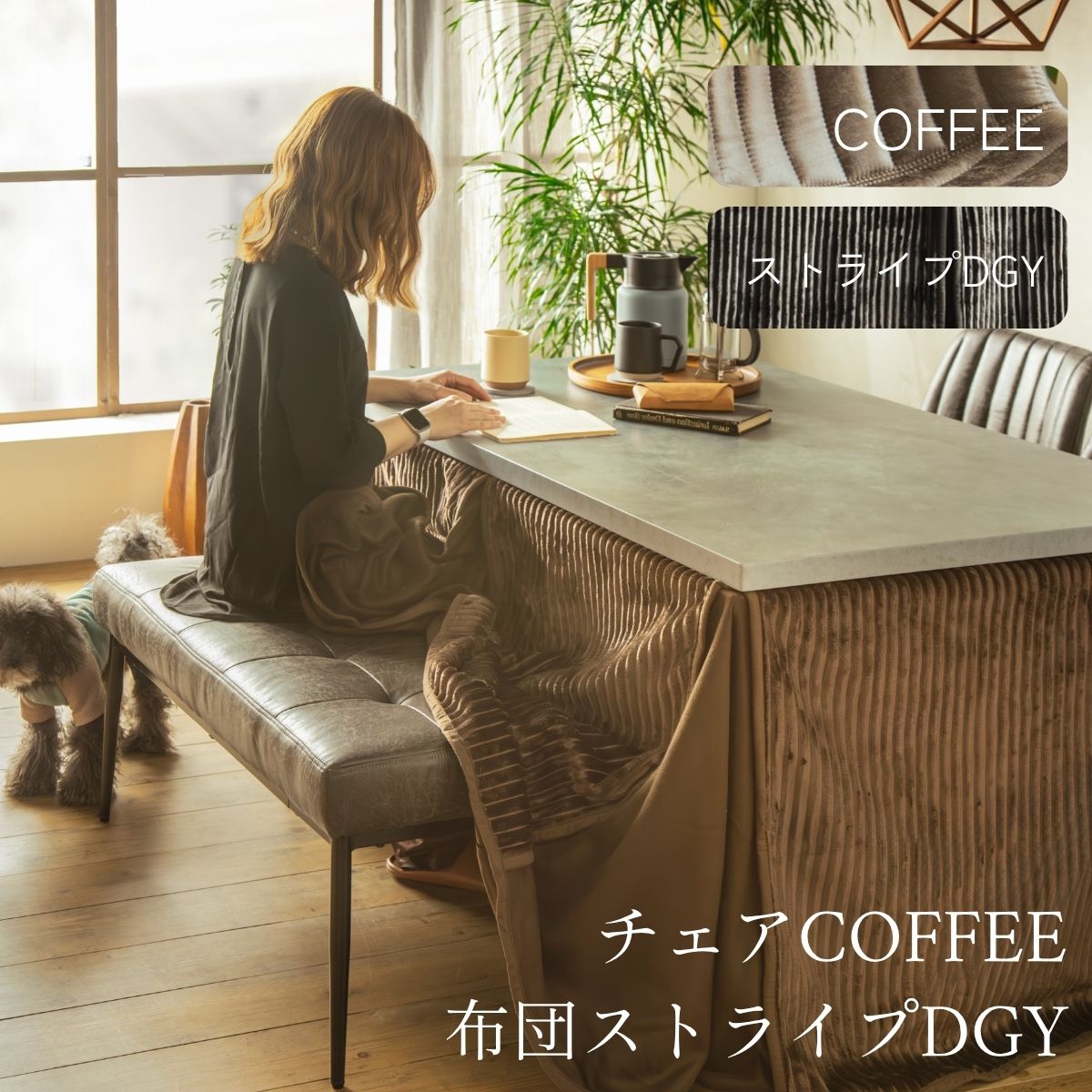 F02182_ダイニングこたつセット 4点 こたつ チェア ベンチ セット 長方形 135×85cm モルタル風天板 メラミン おしゃれ 北欧風 インダストリアル こたつ 家族 一人暮らし