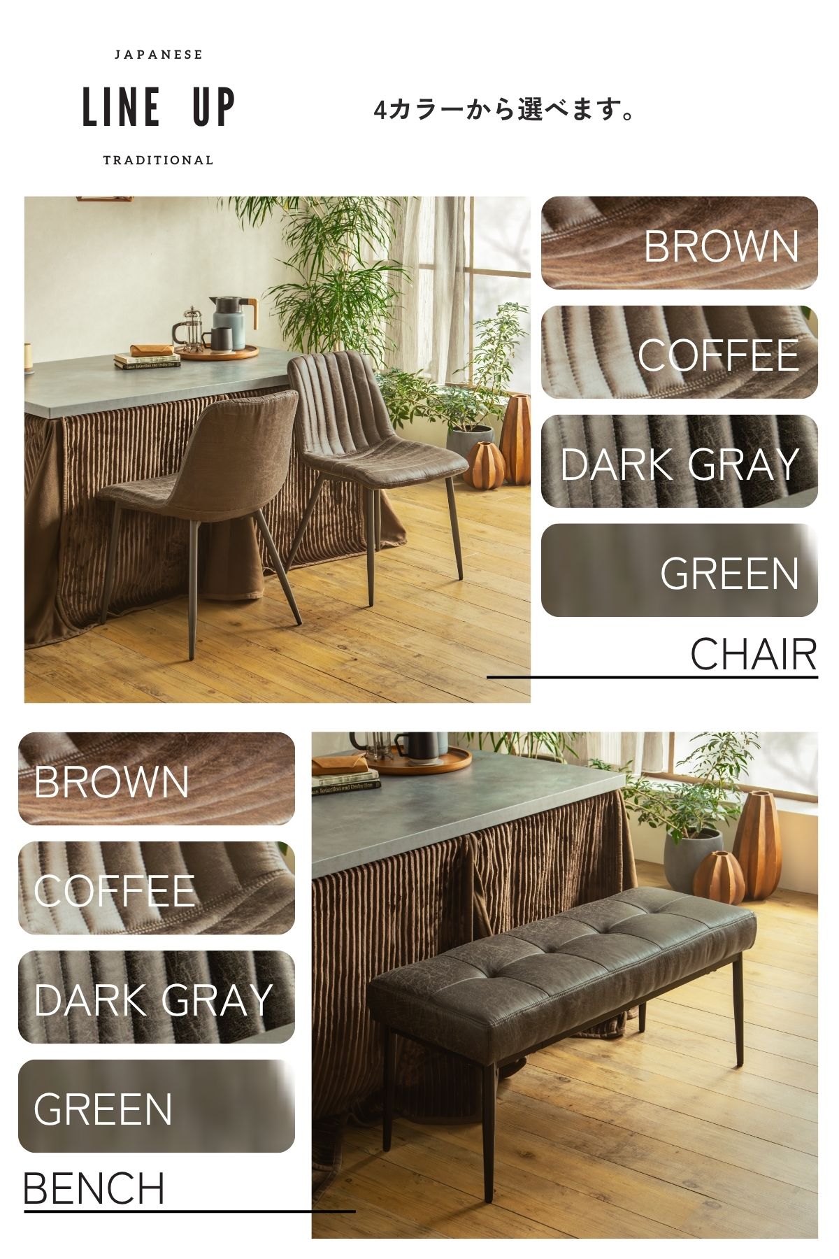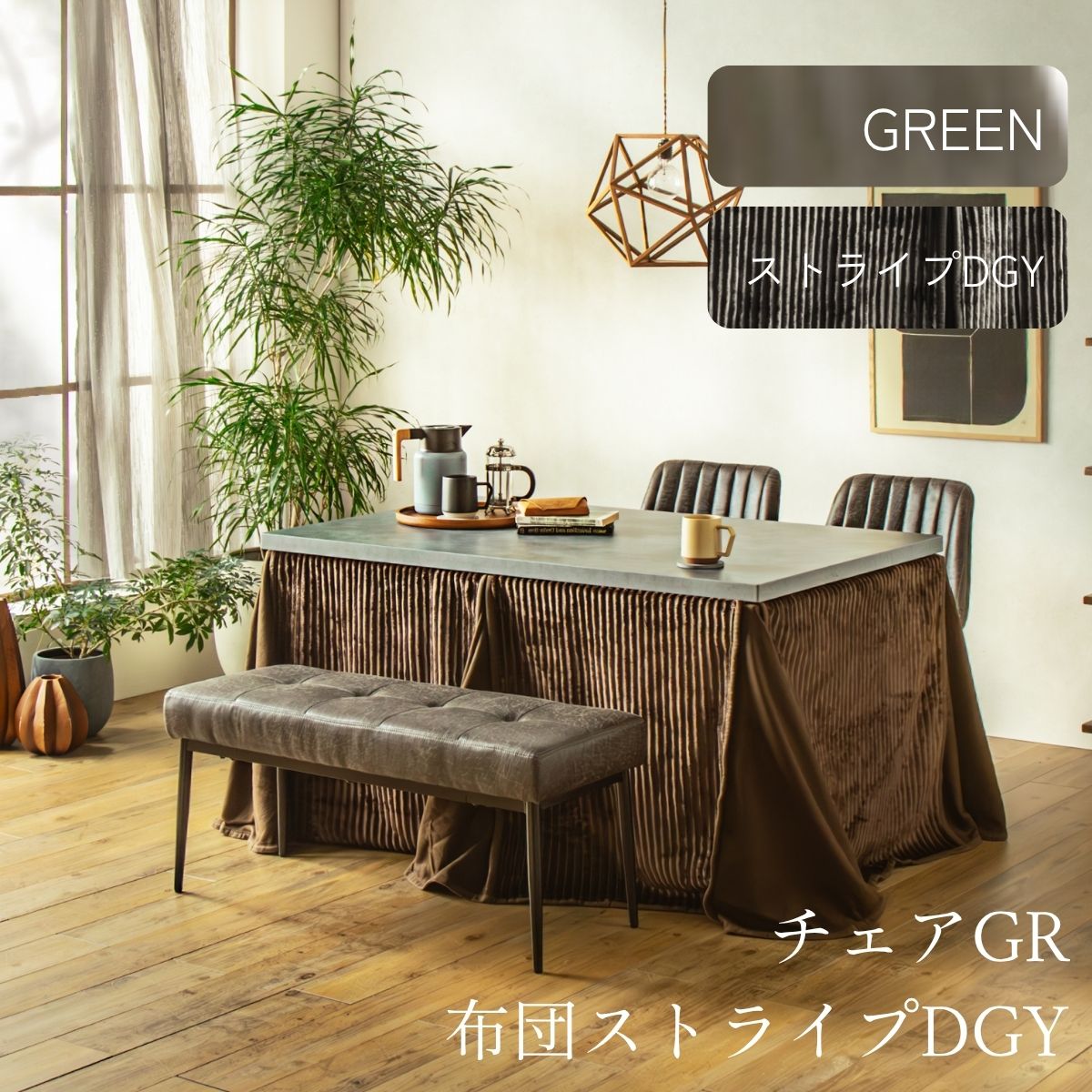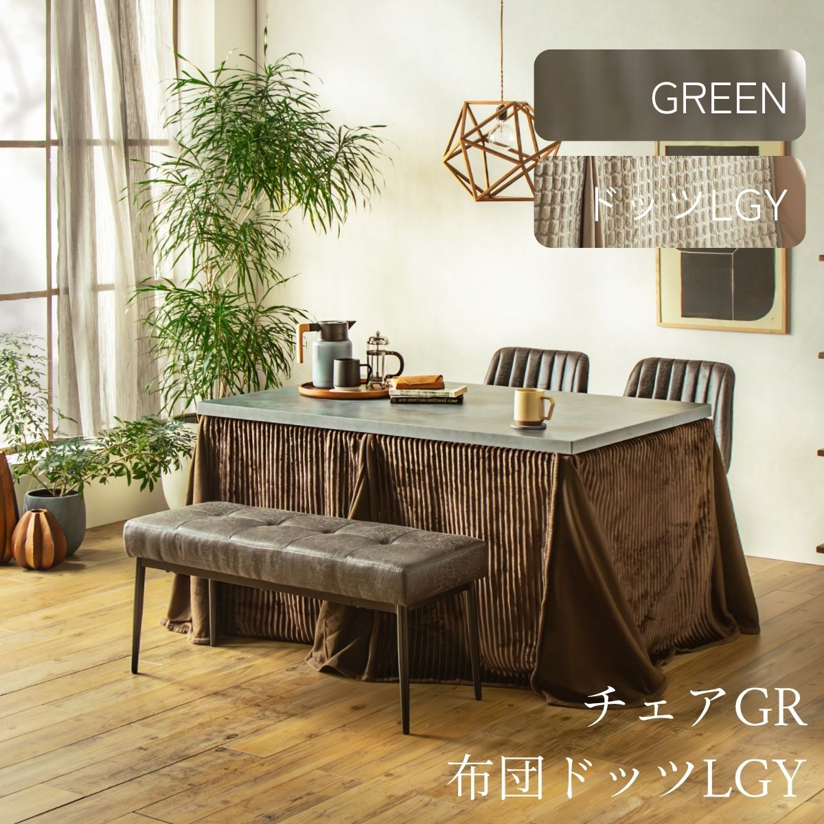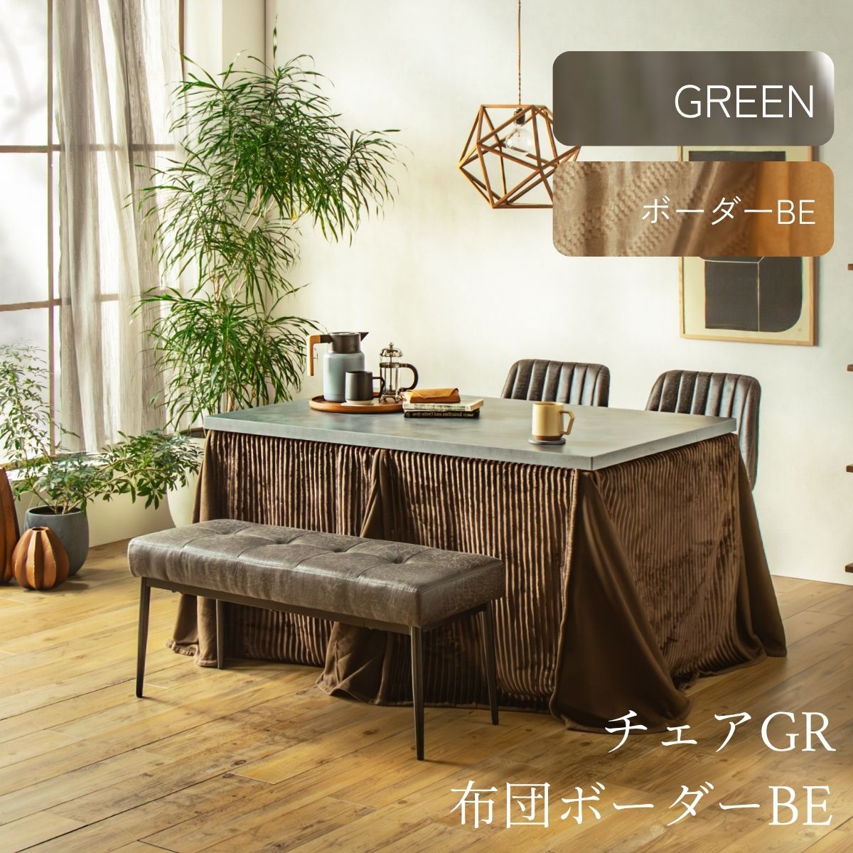 F02182_ダイニングこたつセット 4点 こたつ チェア ベンチ セット 長方形 135×85cm モルタル風天板 メラミン おしゃれ 北欧風 インダストリアル こたつ 家族 一人暮らし