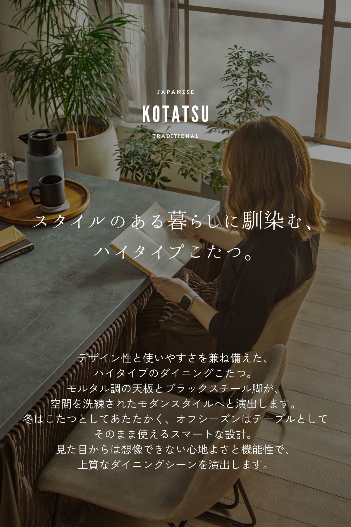 スタイルのある暮らしに馴染む、ハイタイプこたつ。 デザイン性と使いやすさを兼ね備えた、ハイタイプのダイニングこたつ。 |