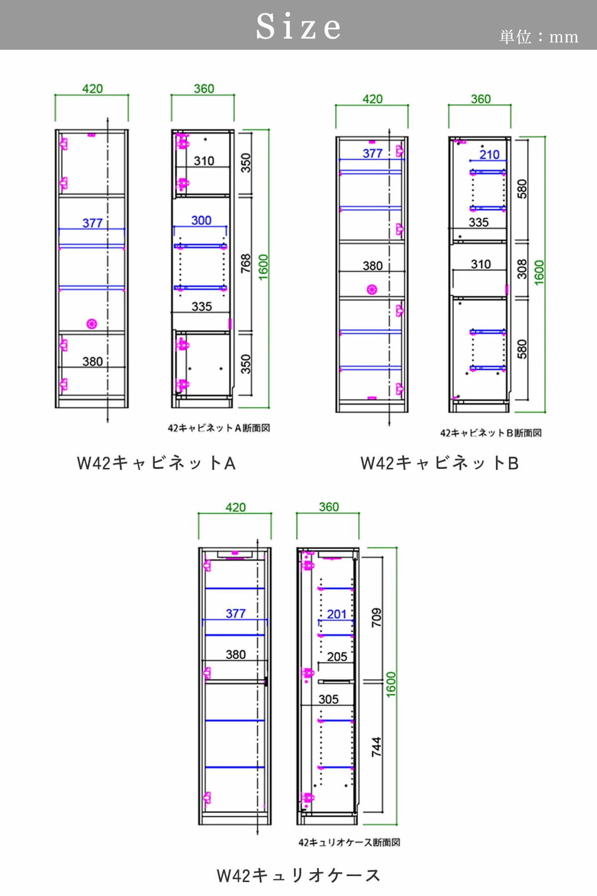 サイズ キャビネットA: W42×D36×H160cm