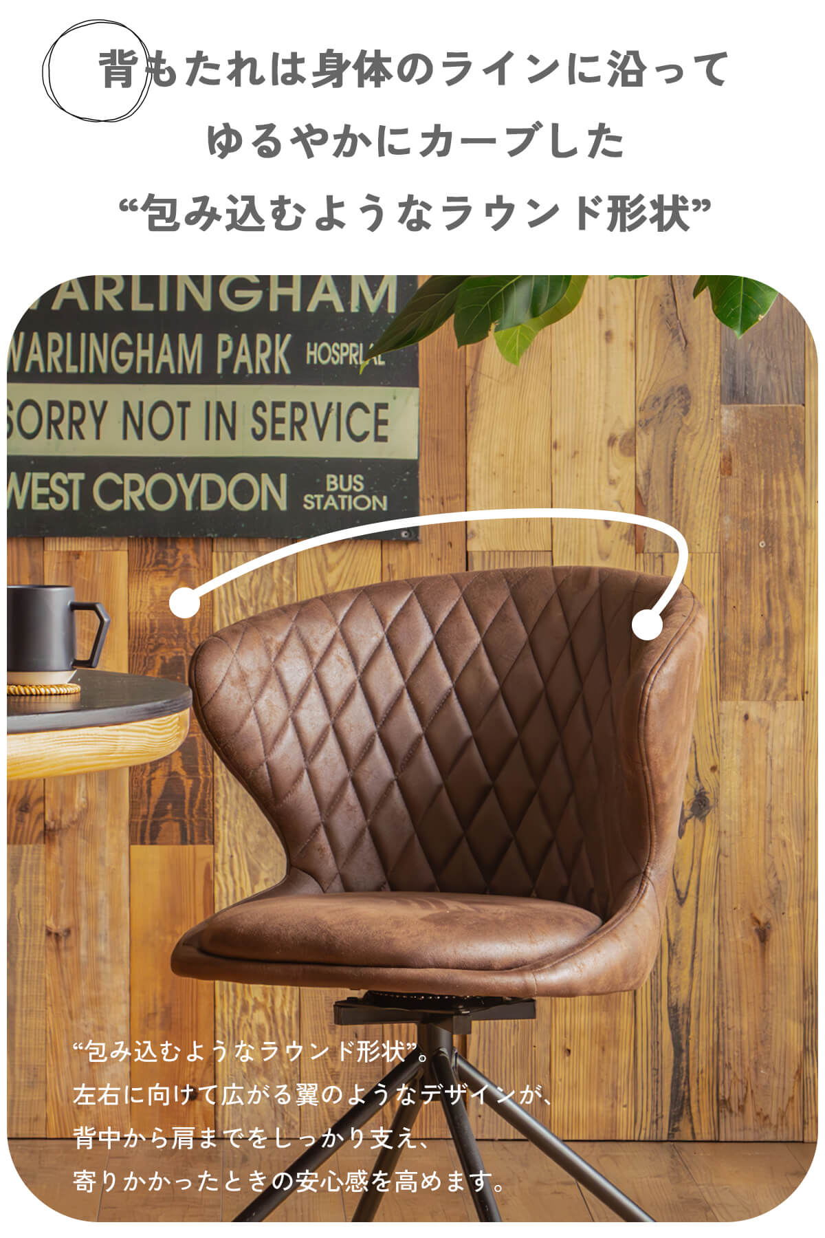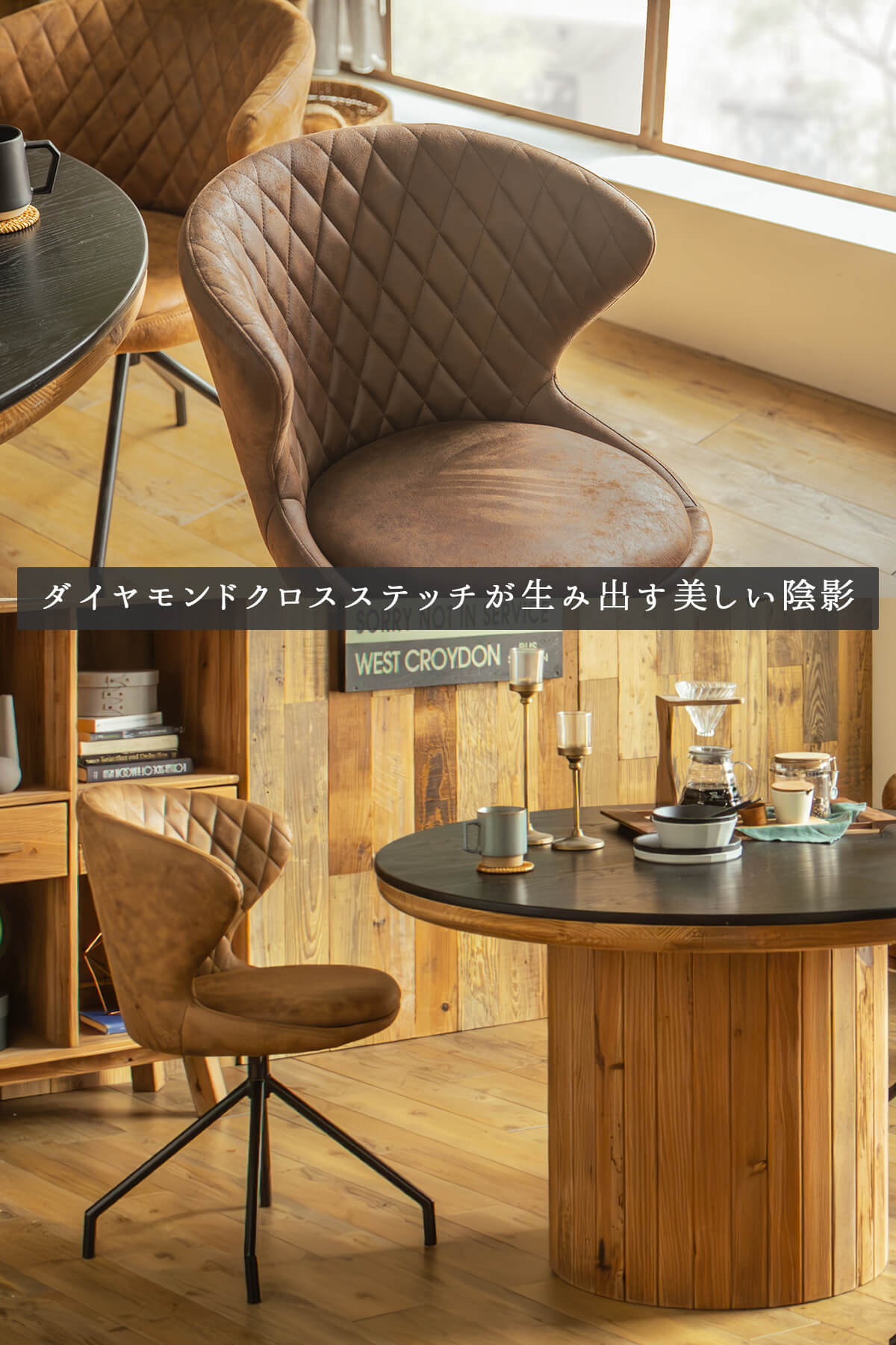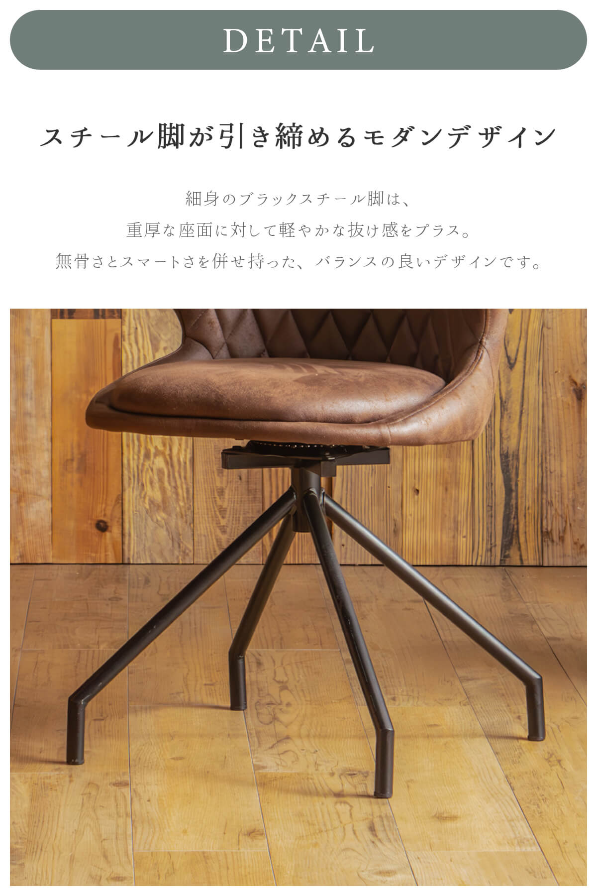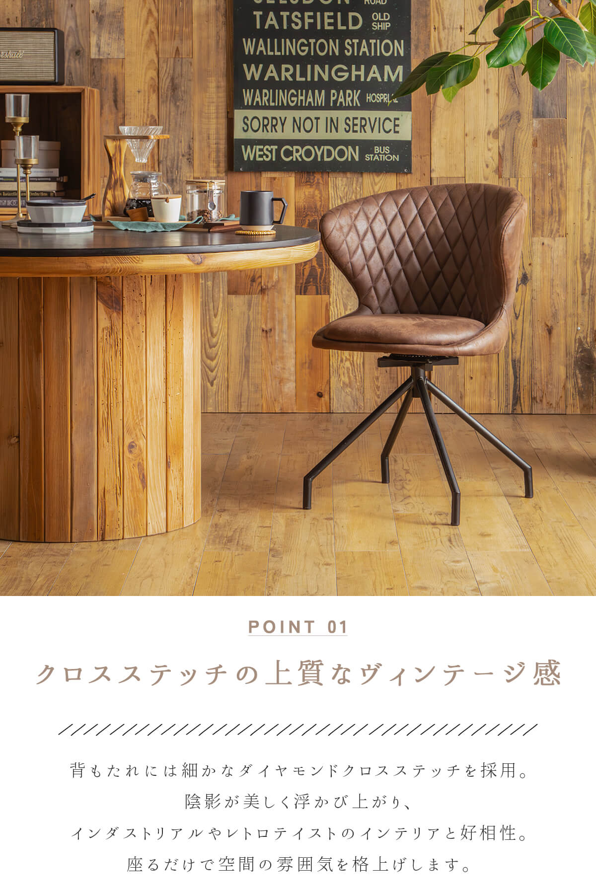 特徴 ヴィンテージの風合いと現代的な快適性を兼ね備え存在感あふれるダイニングチェア。