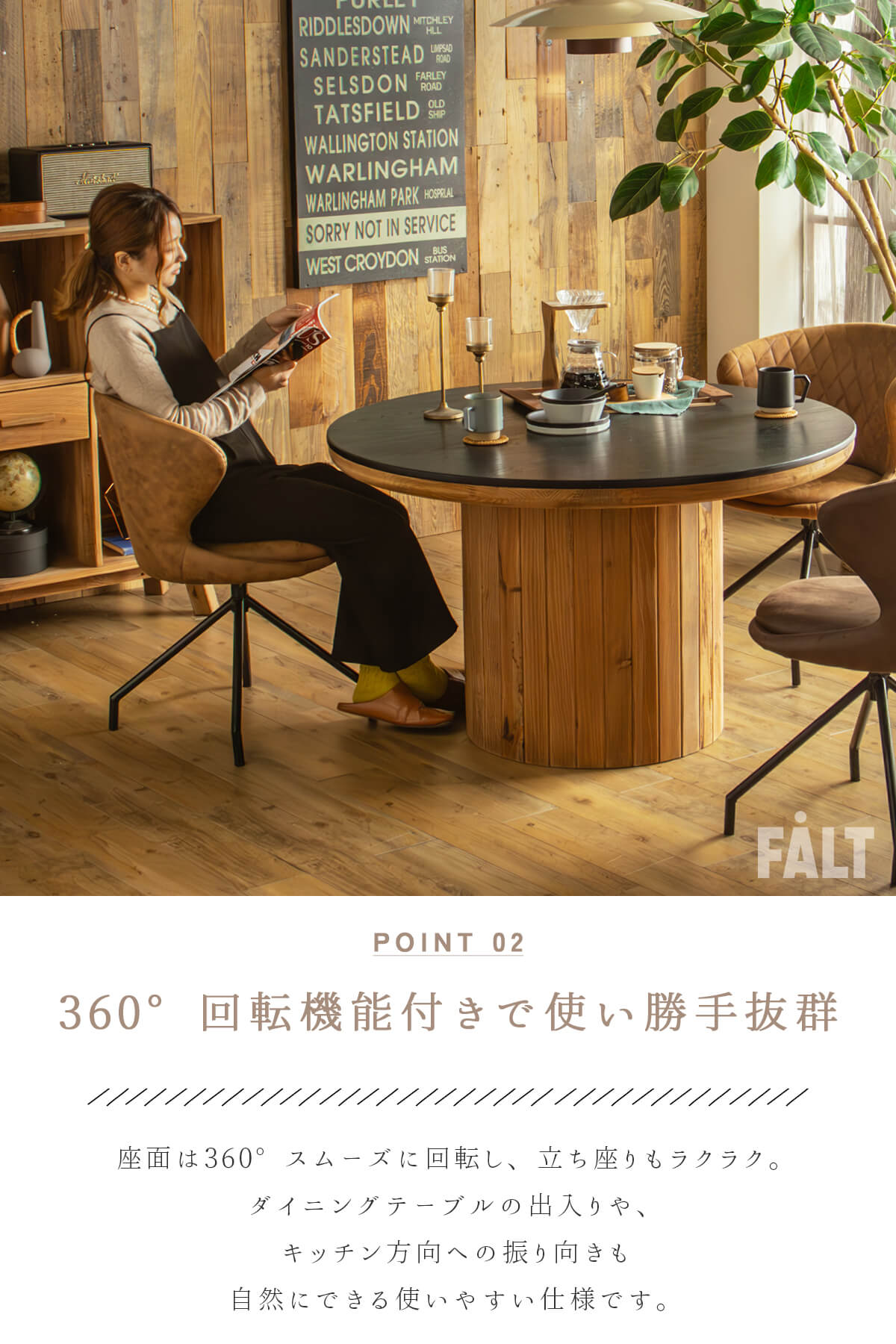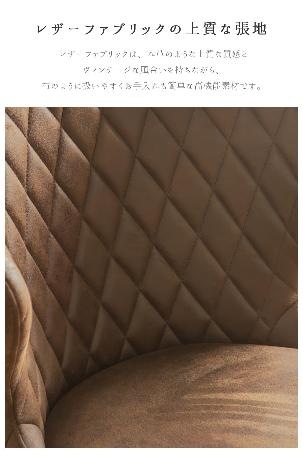 F02192_単品 ダイニングチェア 回転 360°回転 レザーファブリック ファブリック ラウンド ダイニング 円形 食卓 チェア 椅子 アーム付き おしゃれ おすすめ ナチュラル ブラウン クロスステッチ ヴィンテージ調